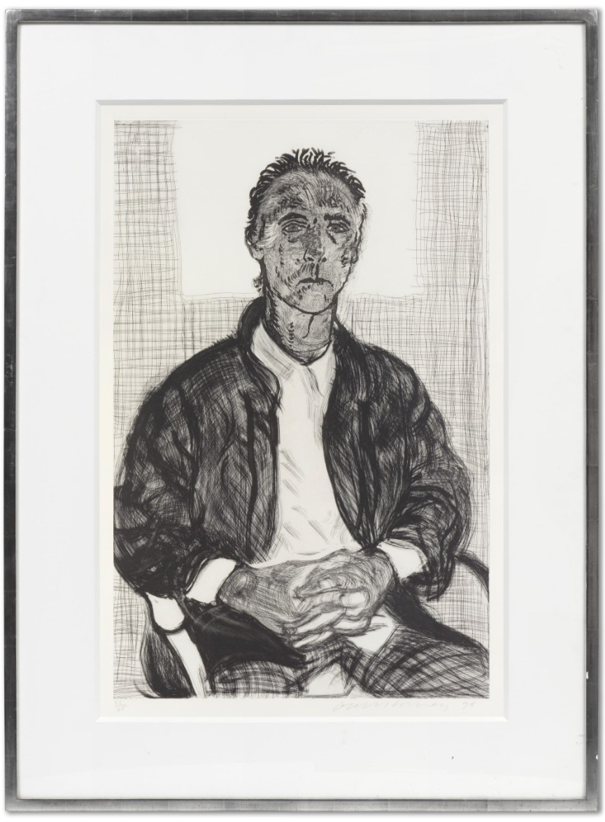 Their 1998 collaboration, Maurice, exemplifies Hockney’s distinctive line drawing, enhanced by unconventional tools such as wire brushes to add texture and volume, highlighting the spirit of experimentation that defined their process. For both artist and printer, printmaking remained a journey of shared discovery.