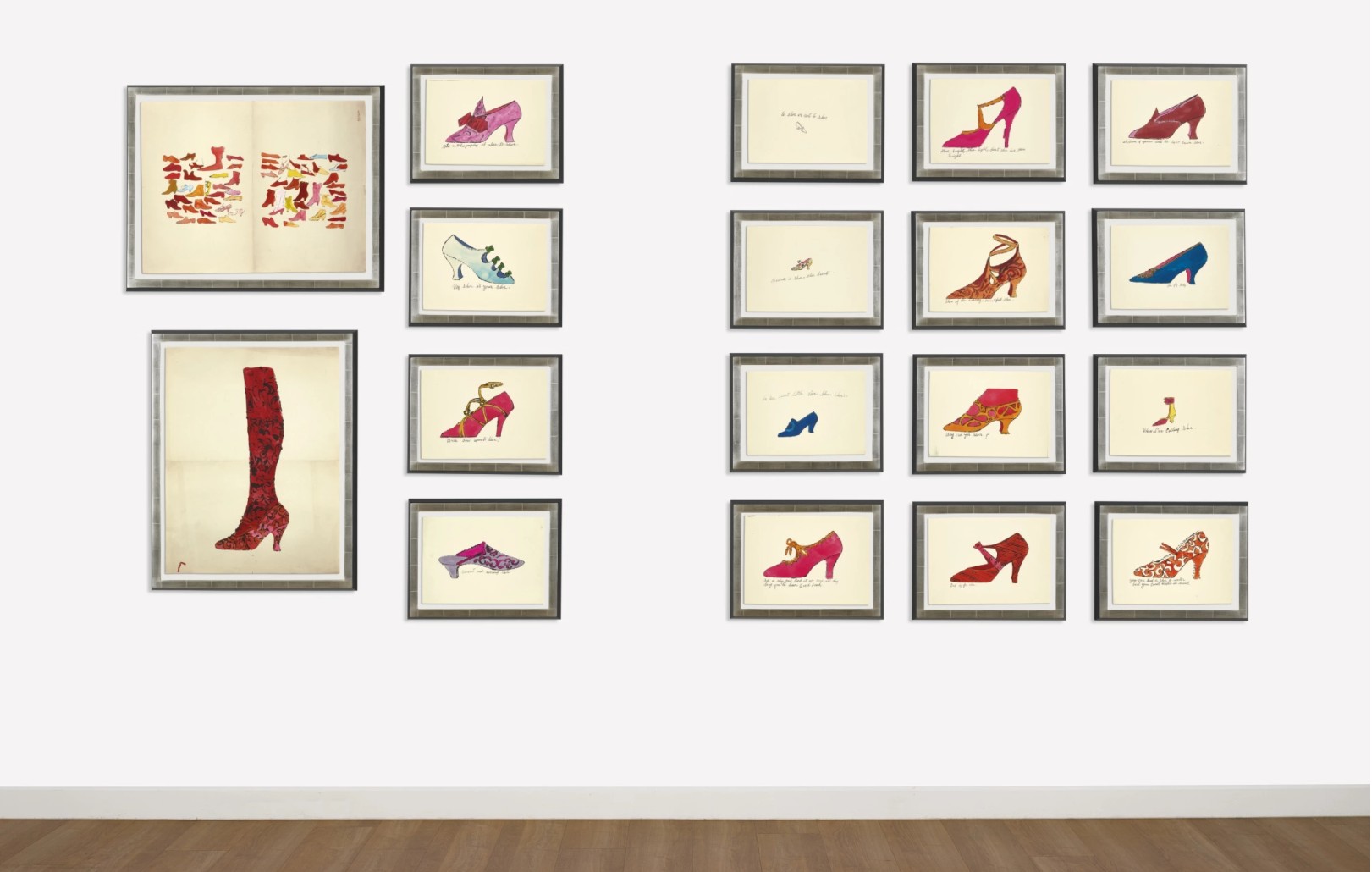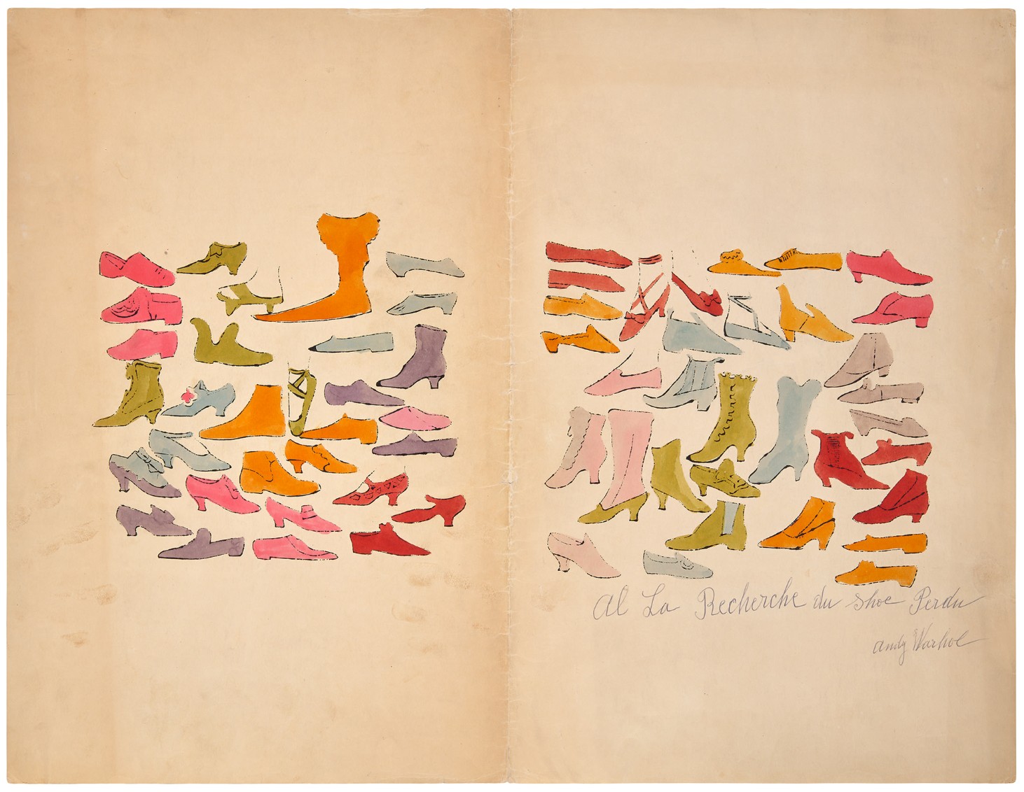 Feldman and Schellmann catalogue Shoe and Leg separately from the A la recherche du shoe perdu portfolio; however they write that Warhol created it at approximately the same date and that some portfolios include this work. Warhol’s original intention is not known.