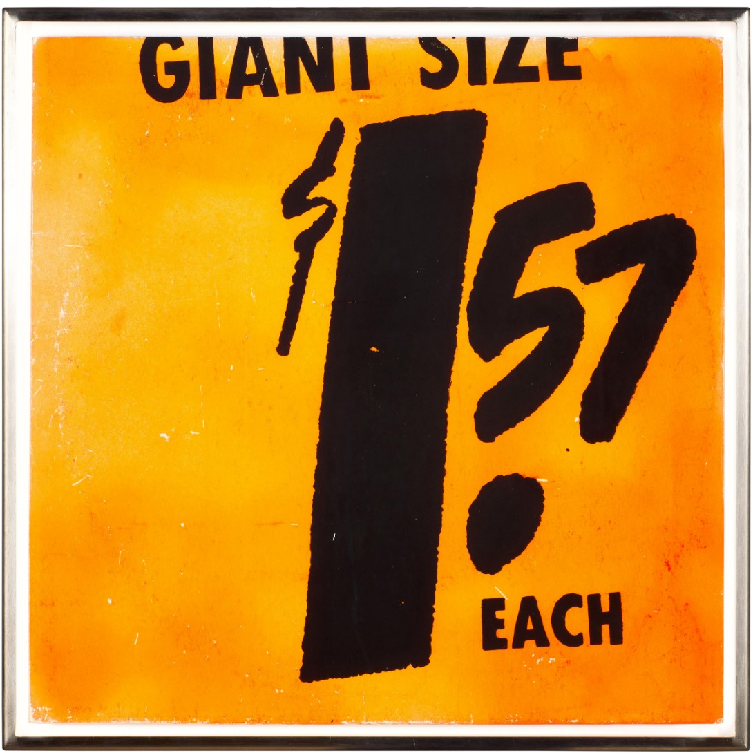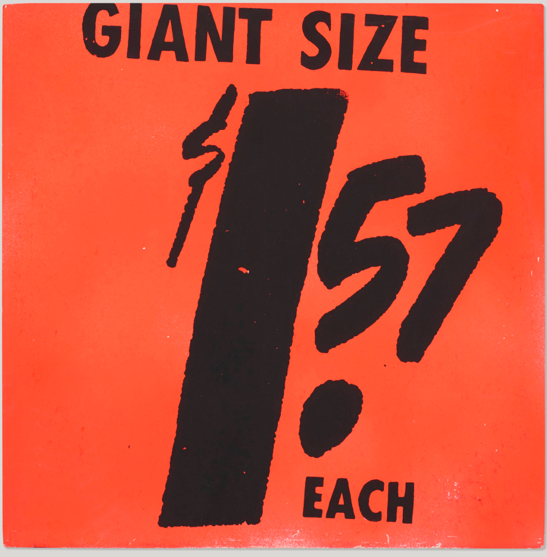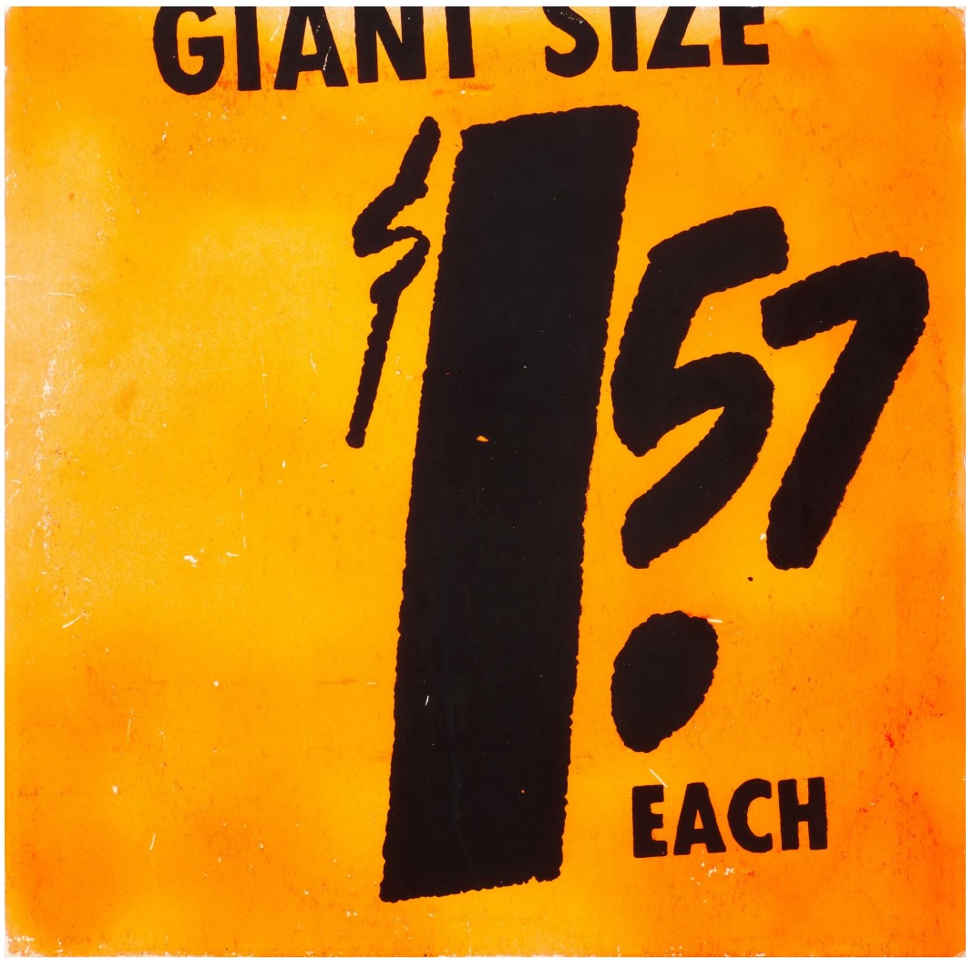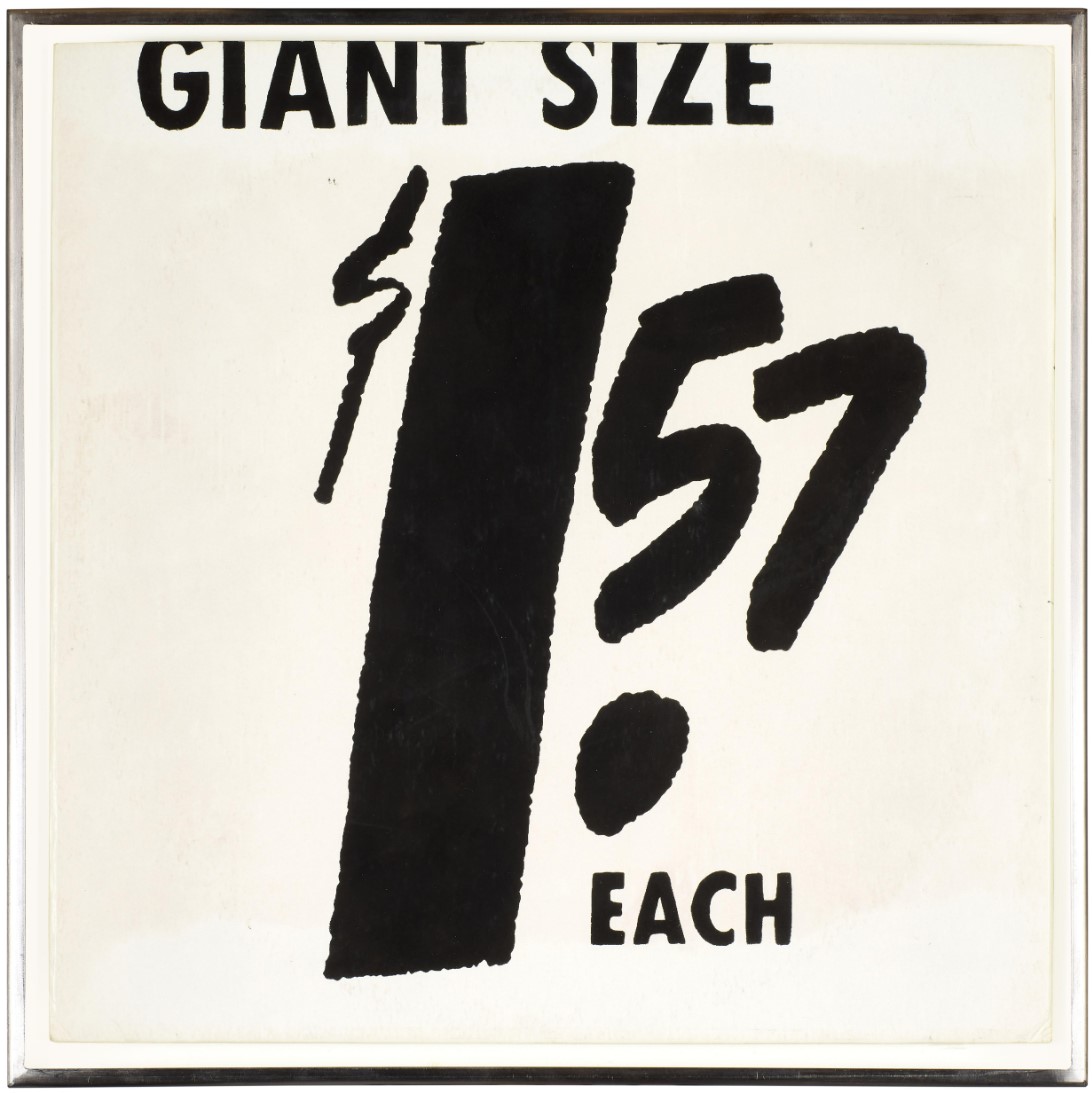 Originally created for The Popular Image Exhibition organized by Alice Denney at the Washington Gallery of Modern Art, Washington D.C. (18 April – 2 June 1963), the purpose for these record sleeves was to house the recordings of interviews conducted by Billy Kluver with all of the eleven artists featured in the exhibition. While ultimately the cover created by Jim Dine was used for the exhibition itself, Andy Warhol’s contribution, $1.57 Giant Size are vibrant examples of Warhol’s exploration of media and probing into the definition of fine art.