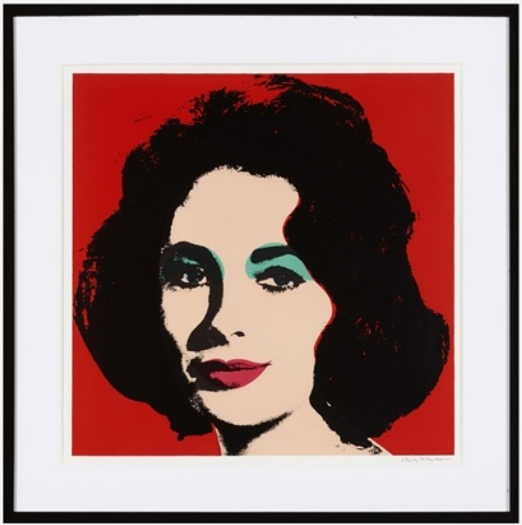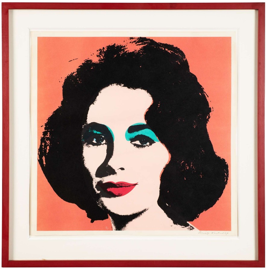 The image of Taylor is tightly cropped and colored with a bright red background that contours Taylor’s thick, dark hair. With this print, Warhol came to realize the power of his simplified, graphic depictions of immeasurable celebrity, fleeting mortality and unrelenting mass-media, thus inspiring his famed depictions of Marilyn Monroe that took on a similar style.