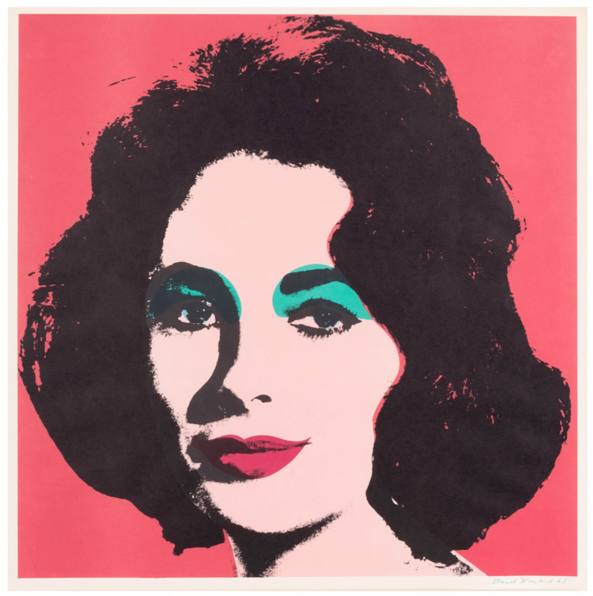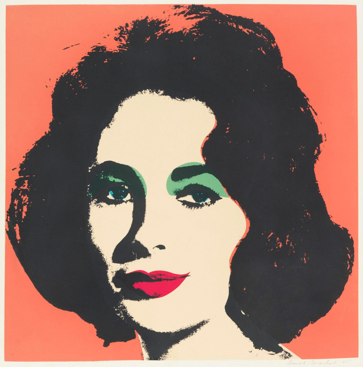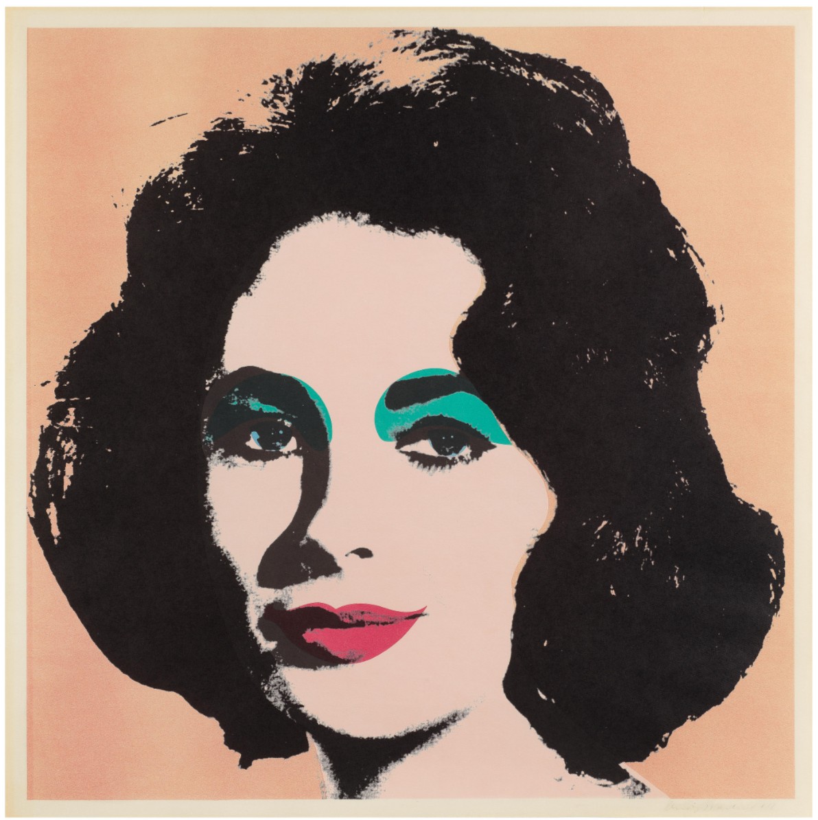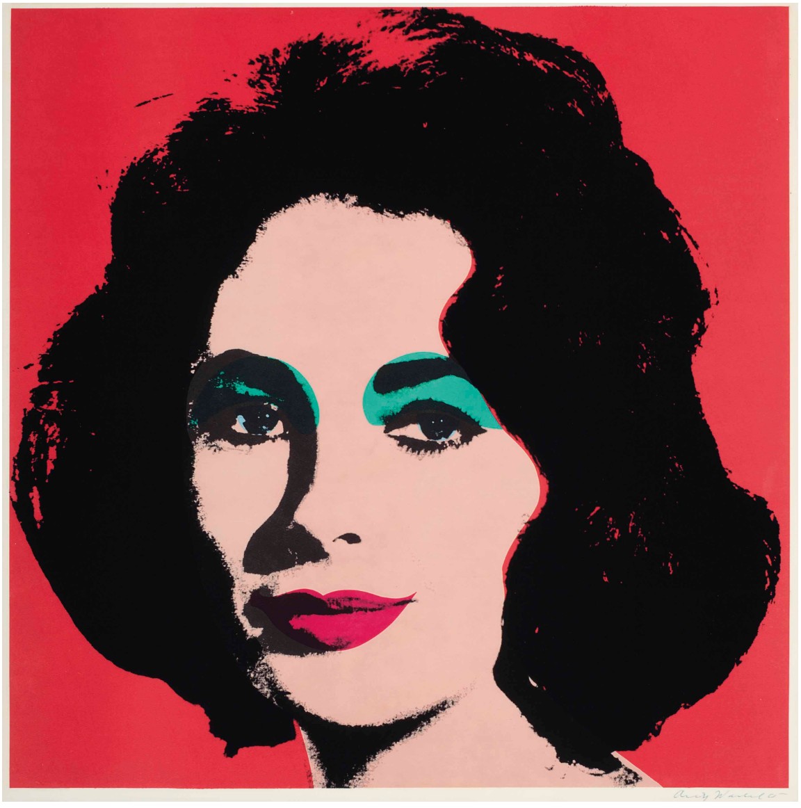 Liz stands among the earliest and most compelling printed portraits of Elizabeth Taylor, a subject through which Warhol crystallized his fascination with celebrity, beauty, and the mechanics of mass image production. Executed at a decisive moment in his career, the work reflects the transition from hand-painted imagery to the systematic use of photographic sources and printing techniques that would define his practice.