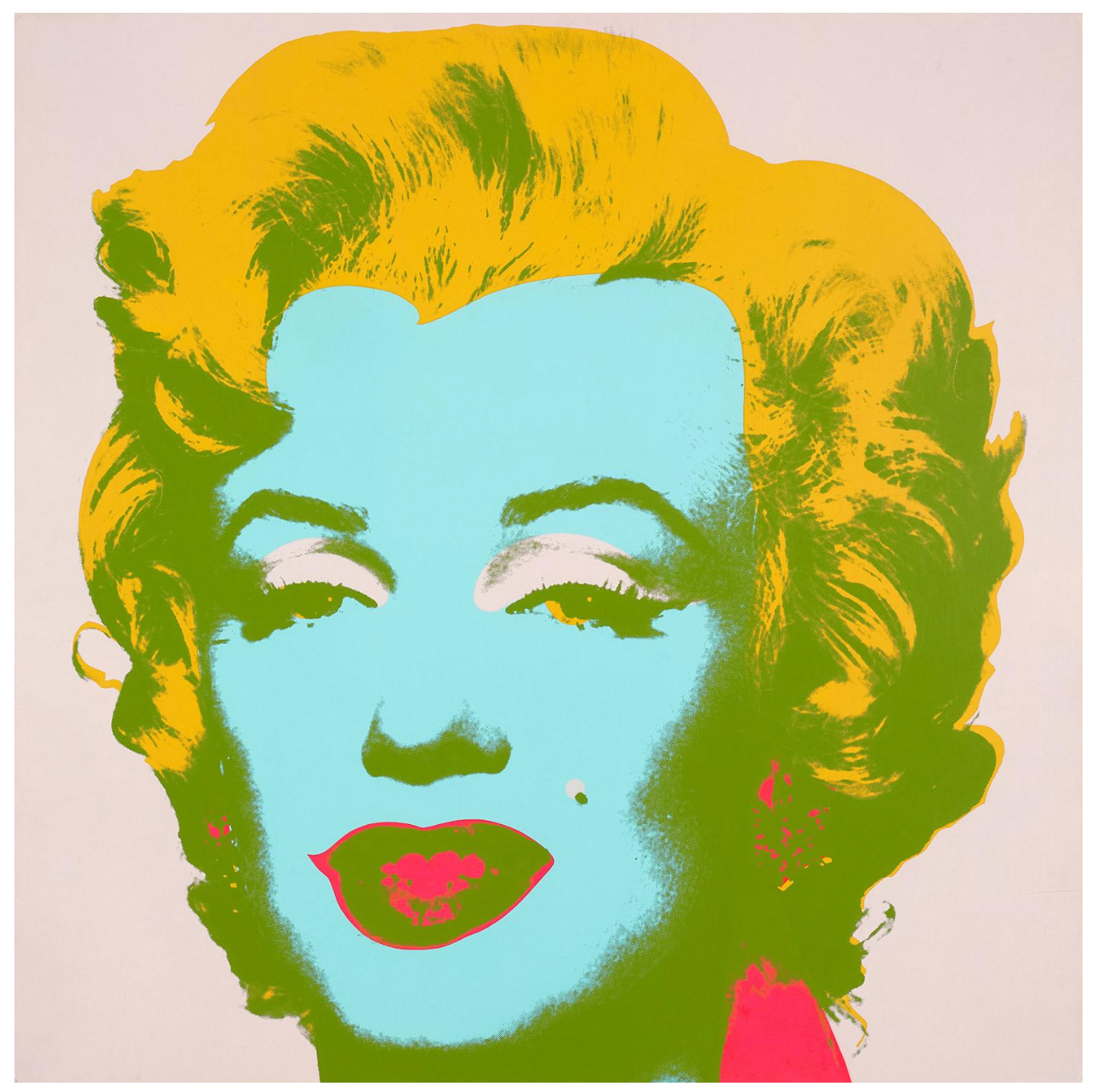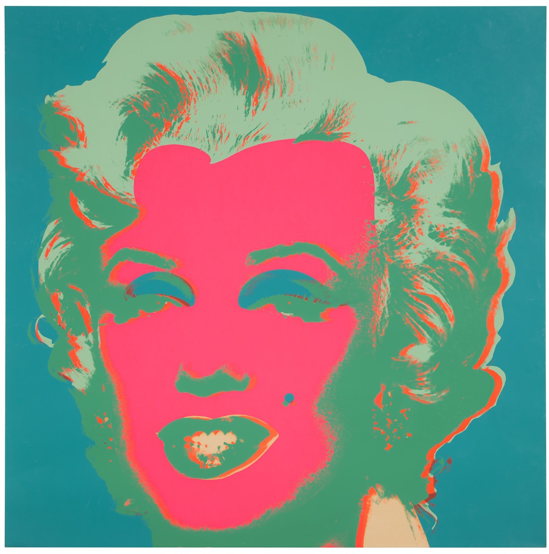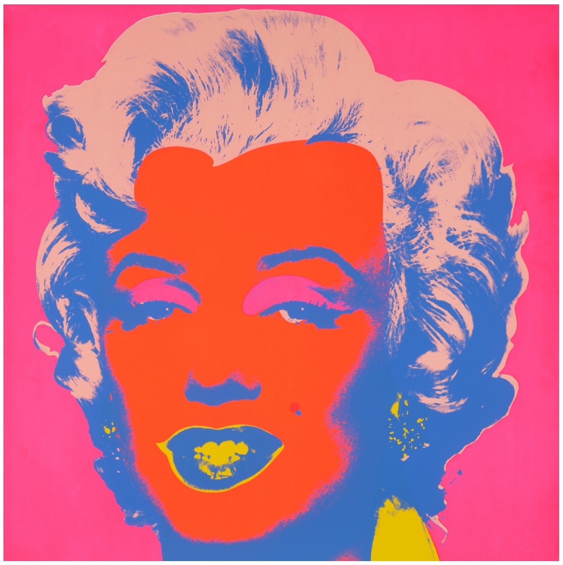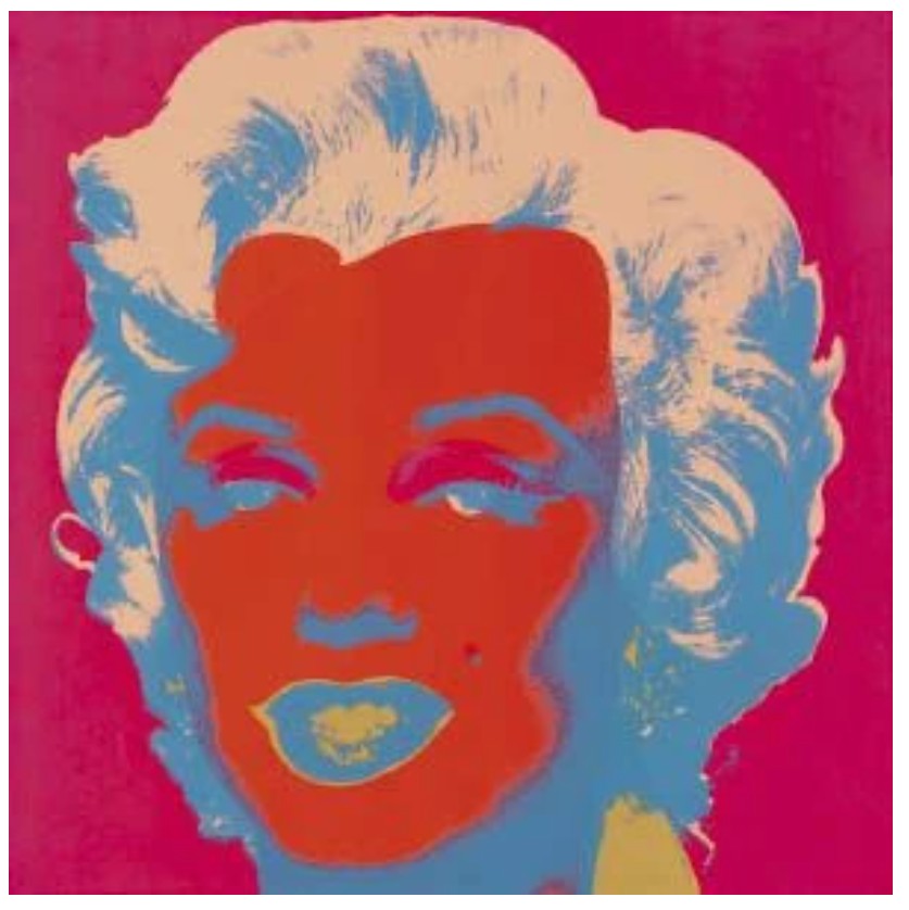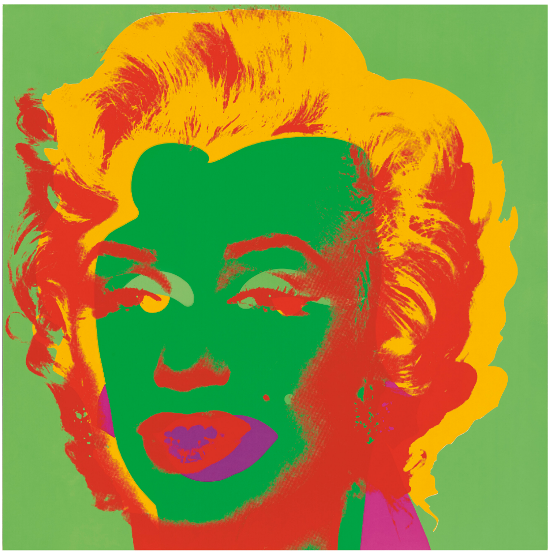Both homage to her life and a critique of the celebrity culture that triggered her fall, Marilyn Monroe (Marilyn) became one of Warhol’s most iconic and illustrious series. Marilyn Monroe (Marilyn) celebrates its subject’s life and glamour, but discreetly hints at the ephemerality of fame and fortune, an effect deepened by the viewer’s knowledge of Monroe’s tragic end. Marilyn Monroe is therefore the perfect encapsulation of the spirit of an age; a candy-colored memento mori.