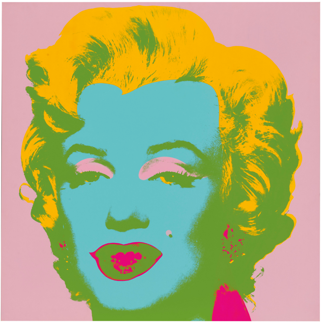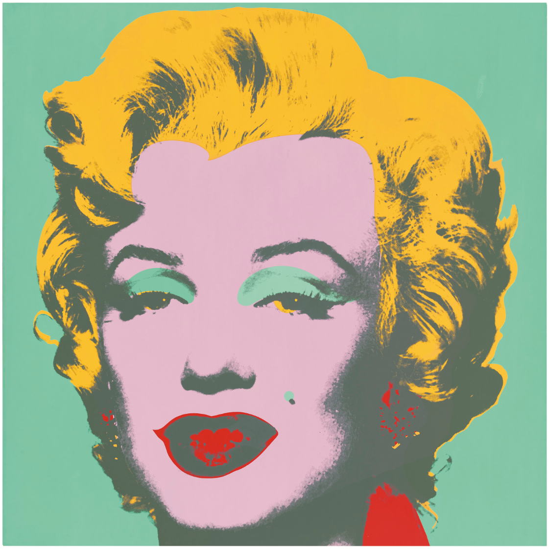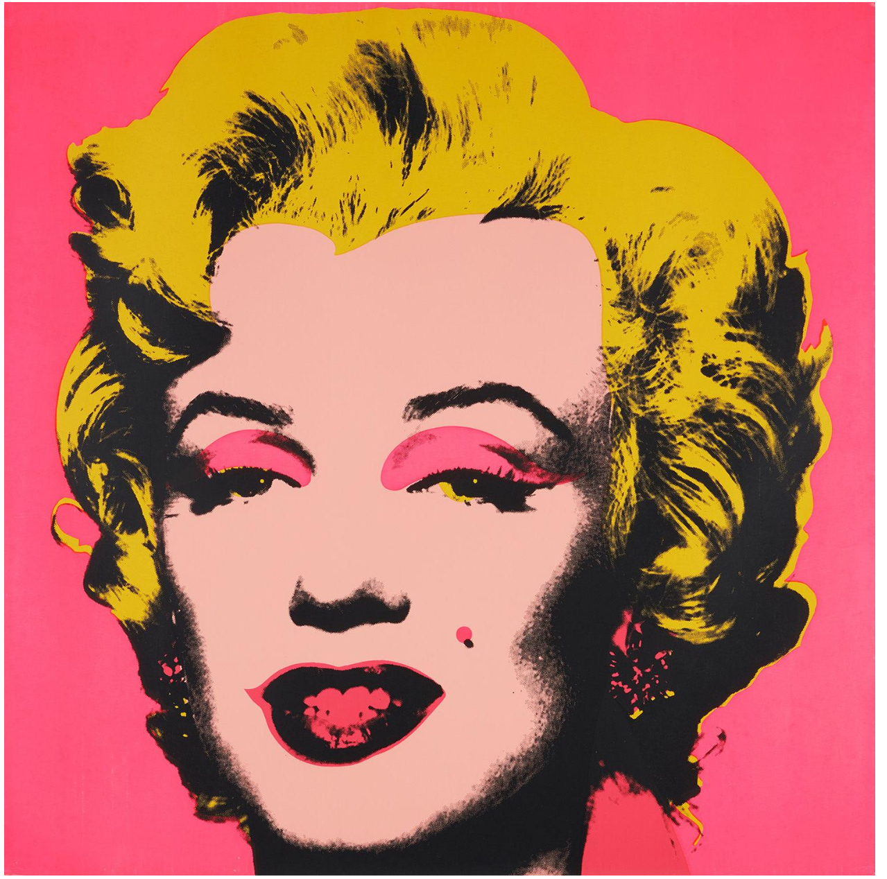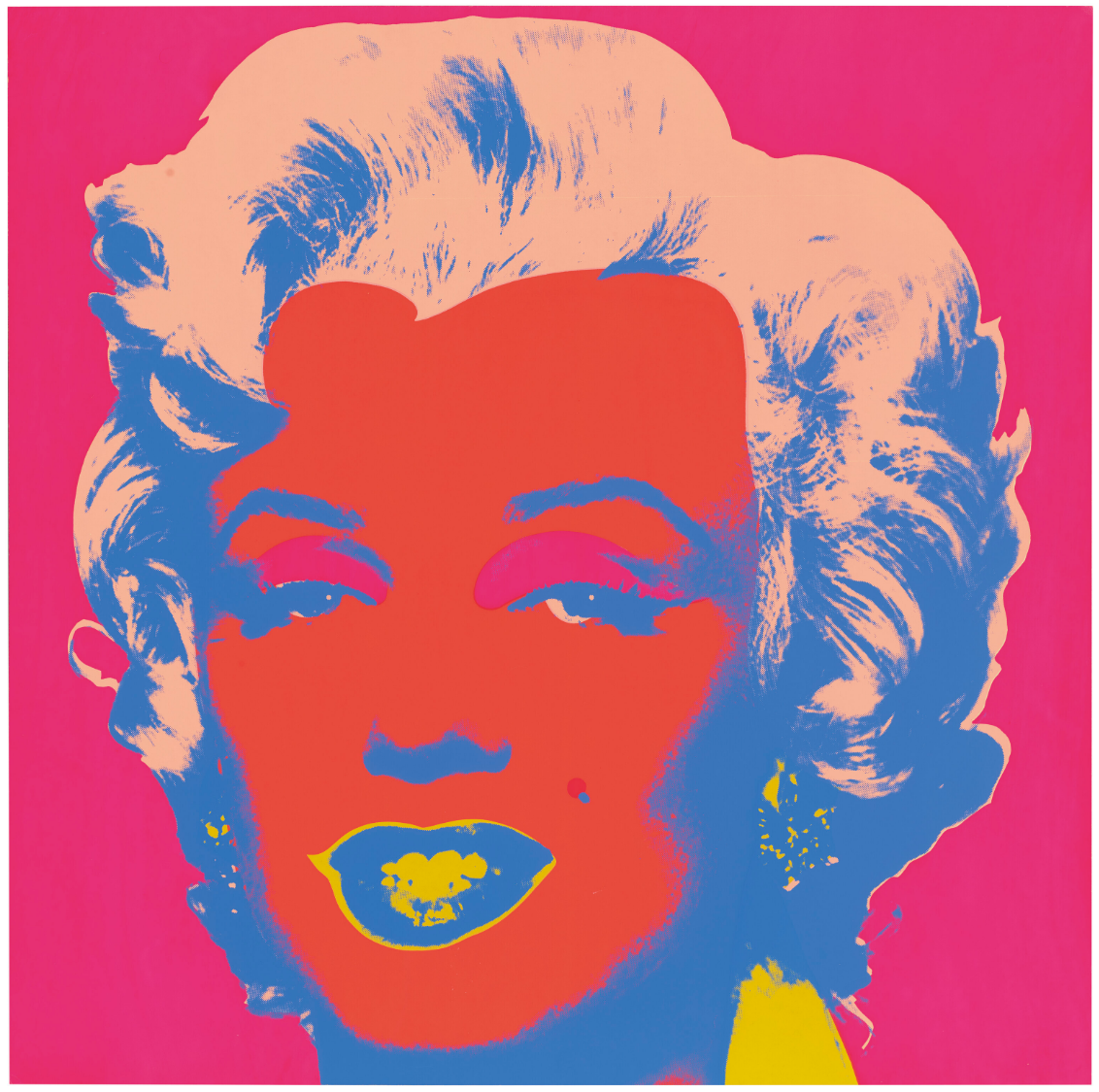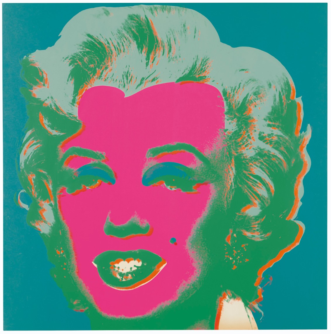 Both homage to her life and a critique of the celebrity culture that triggered her fall, Marilyn Monroe (Marilyn) became one of Warhol’s most iconic and illustrious series. Marilyn Monroe (Marilyn) celebrates its subject’s life and glamour, but discreetly hints at the ephemerality of fame and fortune, an effect deepened by the viewer’s knowledge of Monroe’s tragic end. Marilyn Monroe is therefore the perfect encapsulation of the spirit of an age; a candy-colored memento mori.