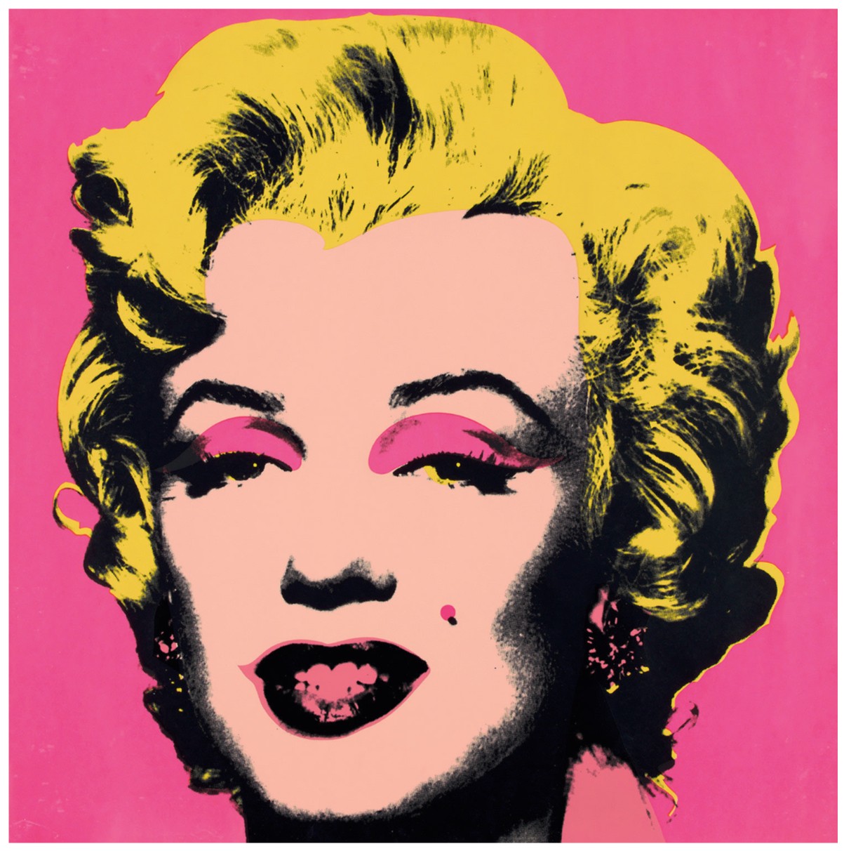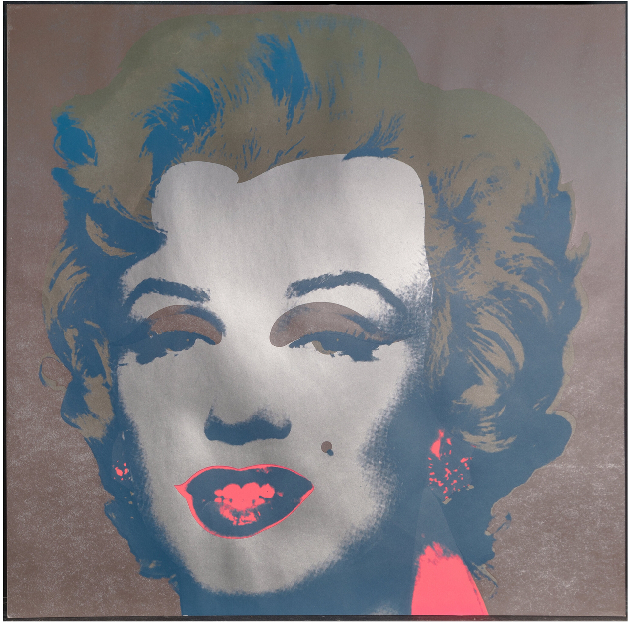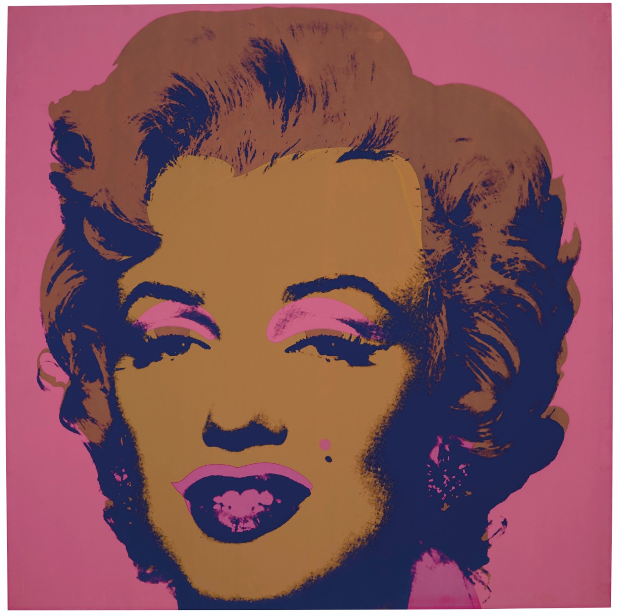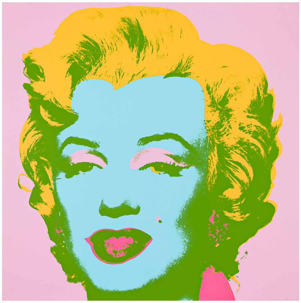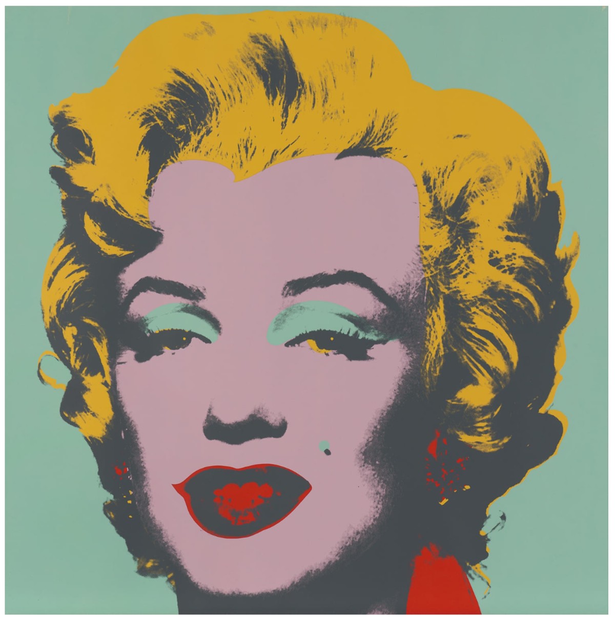 Both homage to her life and a critique of the celebrity culture that triggered her fall, Marilyn Monroe (Marilyn) became one of Warhol’s most iconic and illustrious series. Marilyn Monroe (Marilyn) celebrates its subject’s life and glamour, but discreetly hints at the ephemerality of fame and fortune, an effect deepened by the viewer’s knowledge of Monroe’s tragic end. Marilyn Monroe is therefore the perfect encapsulation of the spirit of an age; a candy-colored memento mori.