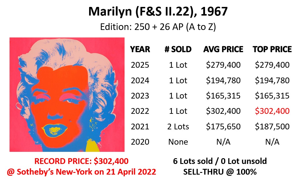 - Marilyn (F&S II.28): sold at Sotheby’s in New-York on 22 October 2025 for USD 317,500