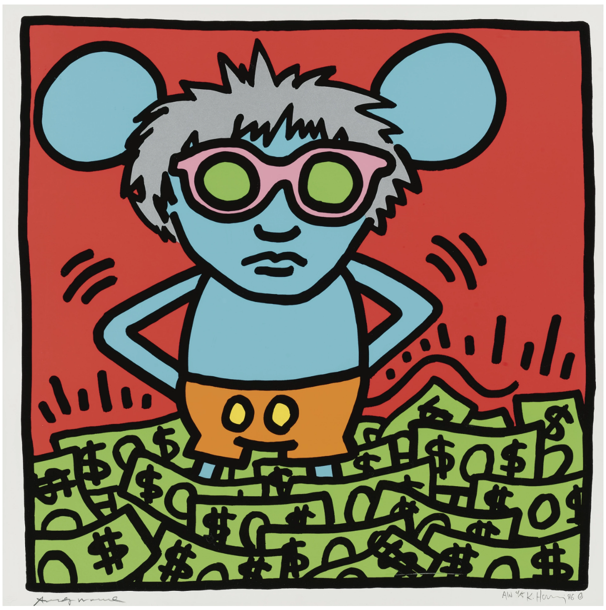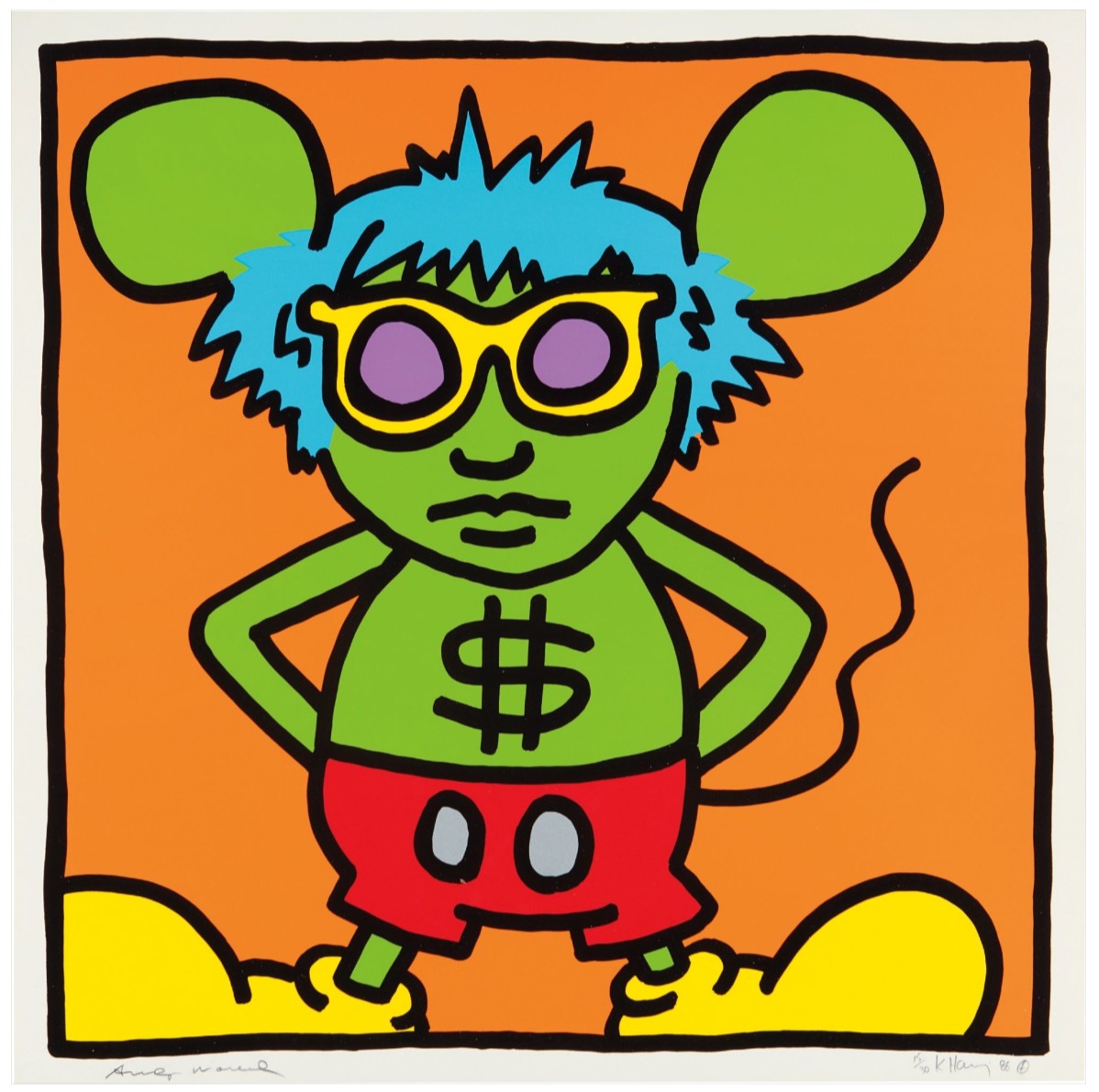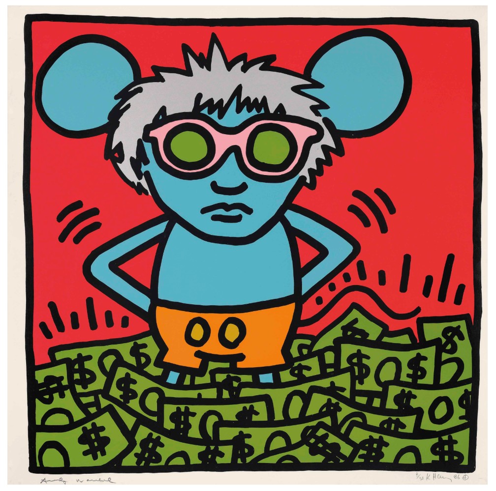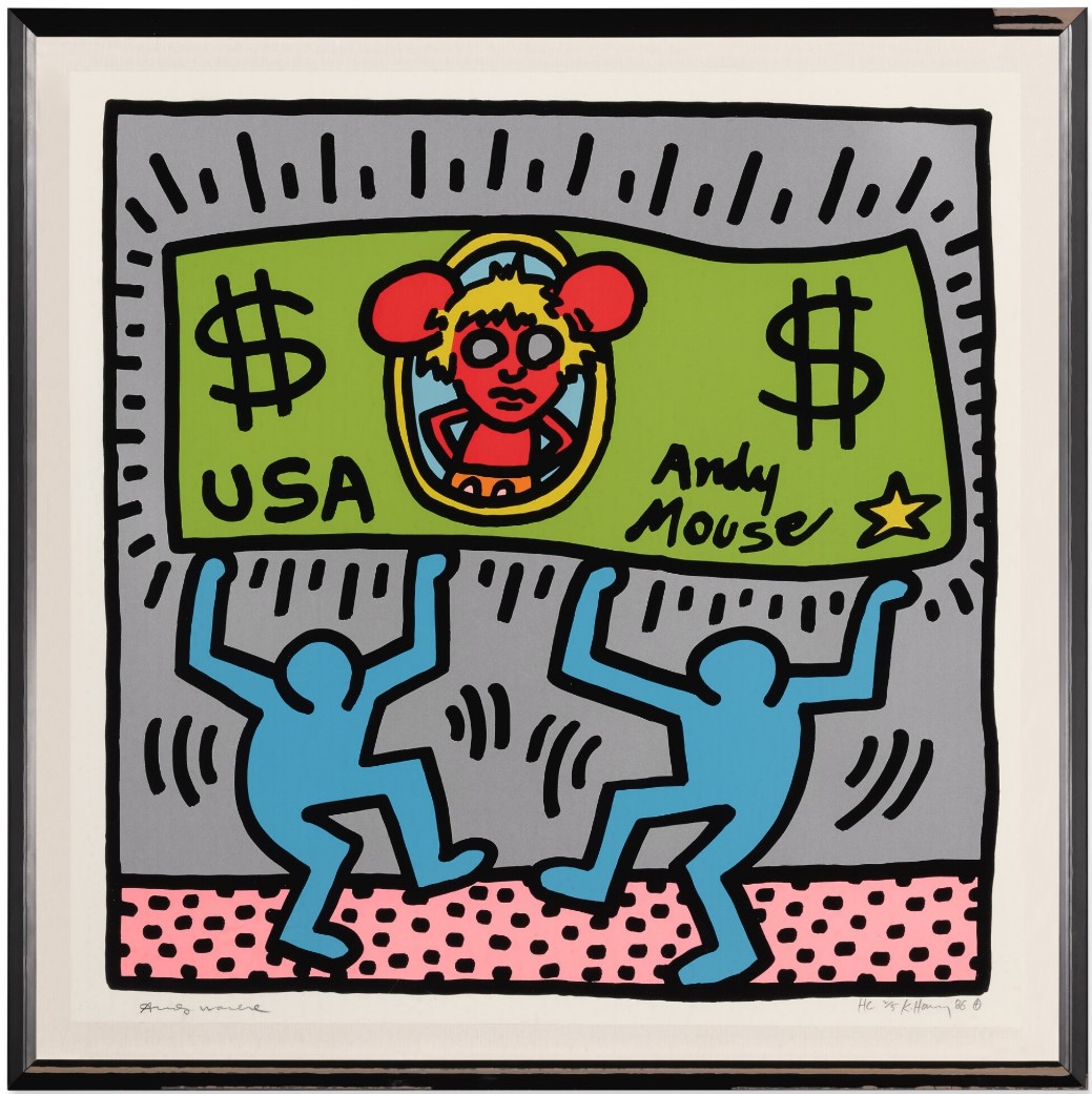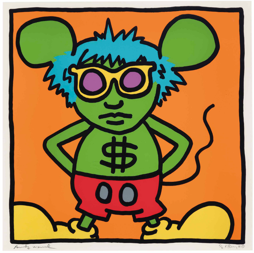 Andy Mouse is the most expensive single print by Keith Haring to have sold at auction. Not only this series is the perfect example of the work of the artist at the top of his career, but the edition size is relatively small at 30, and, more importantly, it is also signed by the subject himself: Andy Warhol.