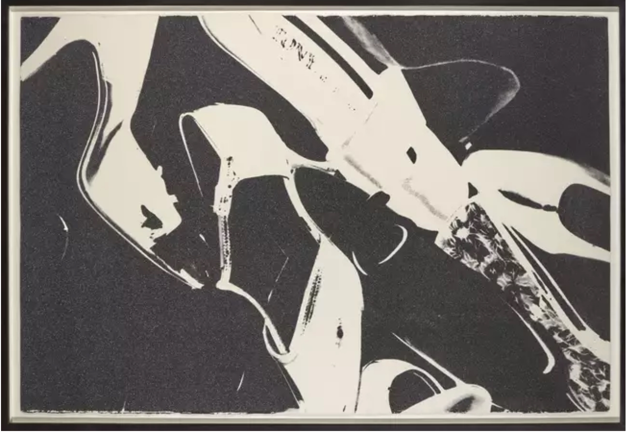 Throughout his career, Warhol was obsessed with luxury, beauty and fame. Evident from these early commissions as well as resonating throughout his career, Warhol constantly surrounded himself with beautiful, interesting and celebrated features of music, art, and fashion. Long before 1980, Warhol’s own position as a celebrity in all three of these categories was solidified, and, as he claimed, the decision to paint the Diamond Dust Shoes was due in large part to wanting to get back to his roots, most likely because of a clear nostalgia for this past moment in his life. Still Diamond Dust Shoes also signifies this glamorous, celebrity for which he was constantly drawn.