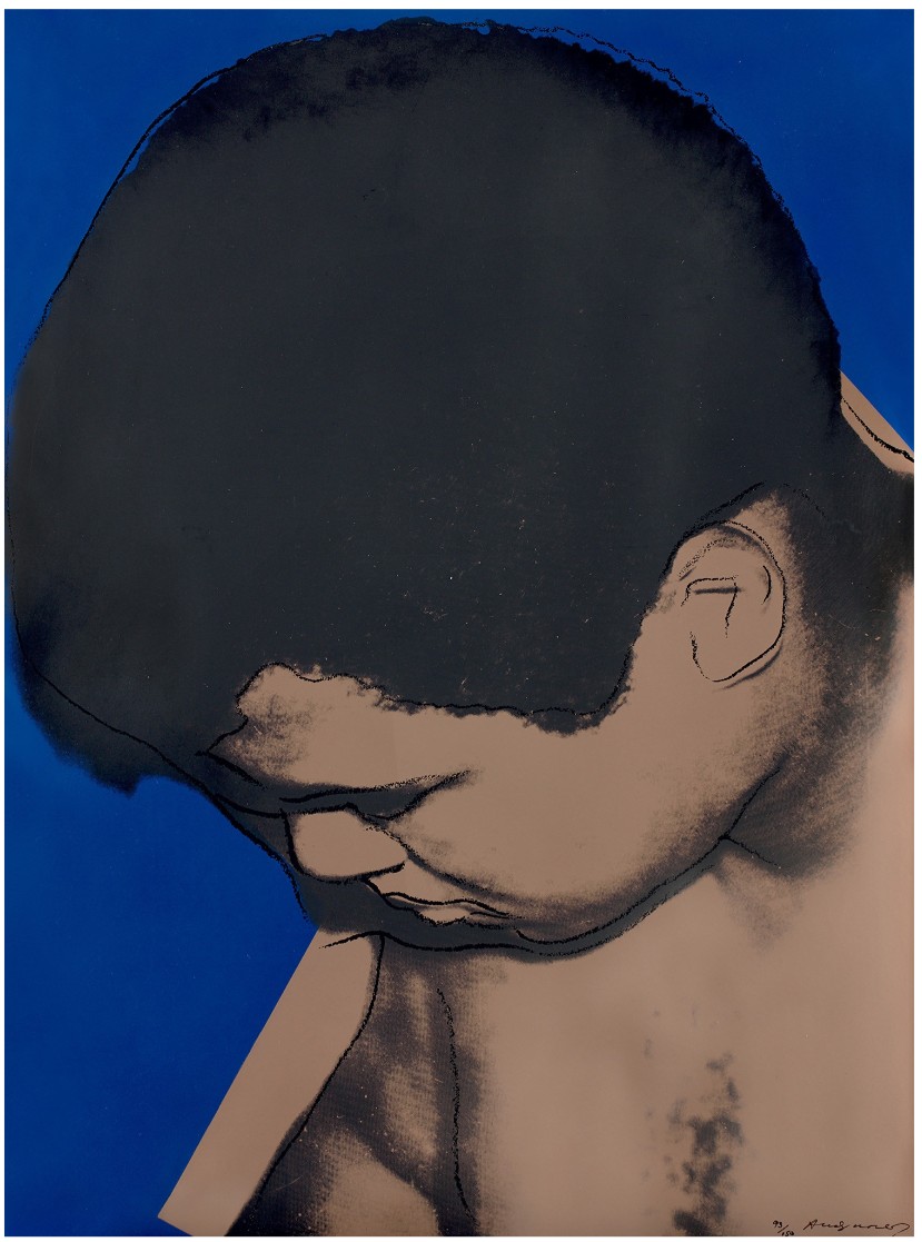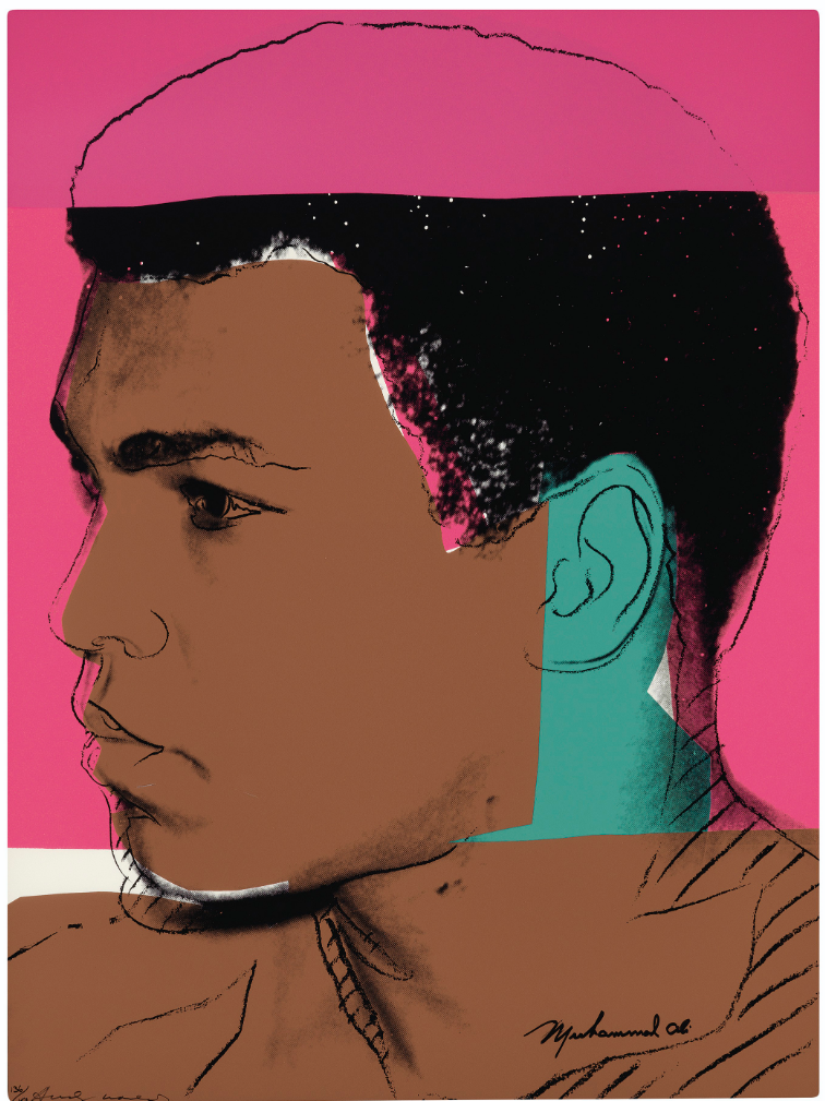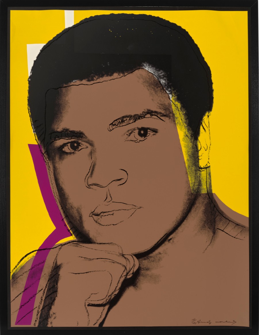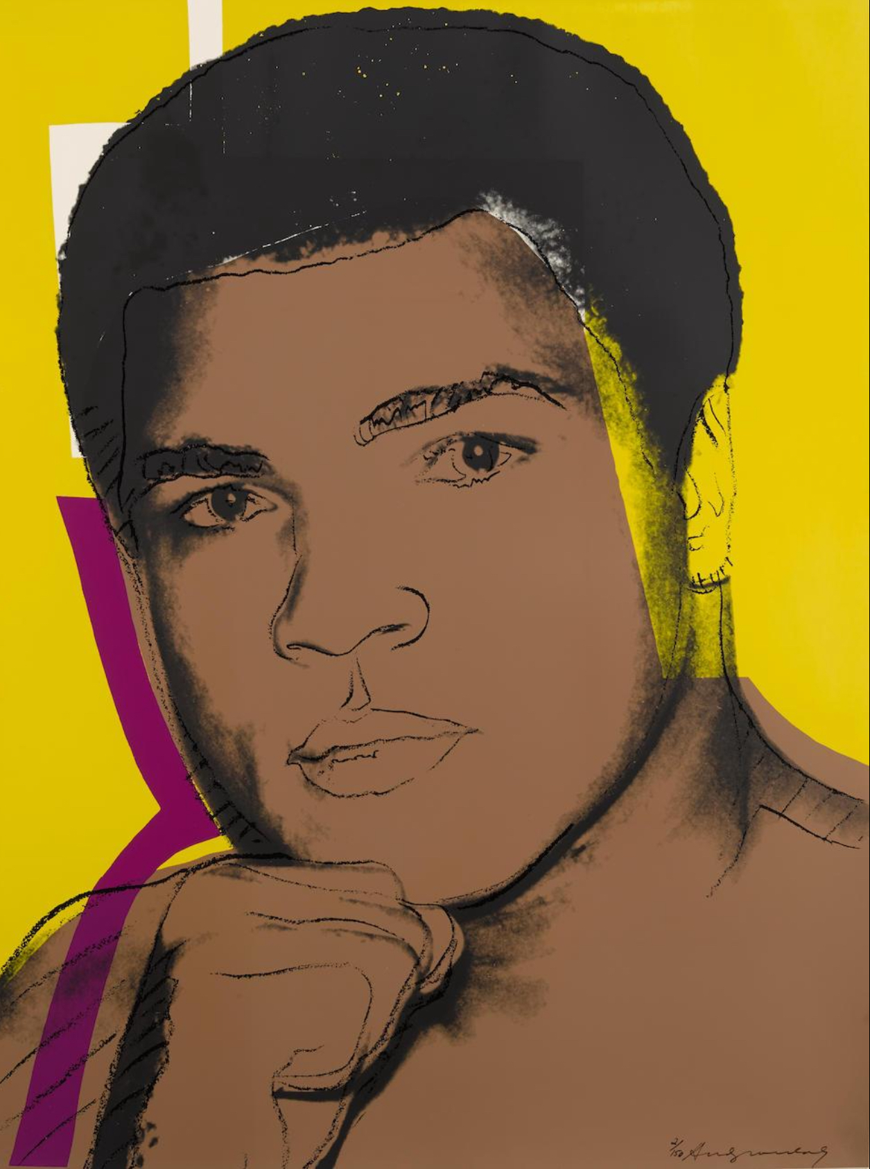 Andy Warhol photographed Muhammad Ali for the first time as part of his 1977 Athletes series. This group of works featured other sports stars of the era, such as the golfer Jack Nicklaus, Brazilian soccer hero Pele and basketball legend Kareem Abdul-Jabbar, and was initiated by the West Coast art collector and sports fanatic Richard Weisman. At the time of their first encounter, Muhammad Ali was — for the third time — the World Boxing Association Heavyweight Champion, and Andy Warhol was approaching the peak of his celebrity. They could not have been more different.