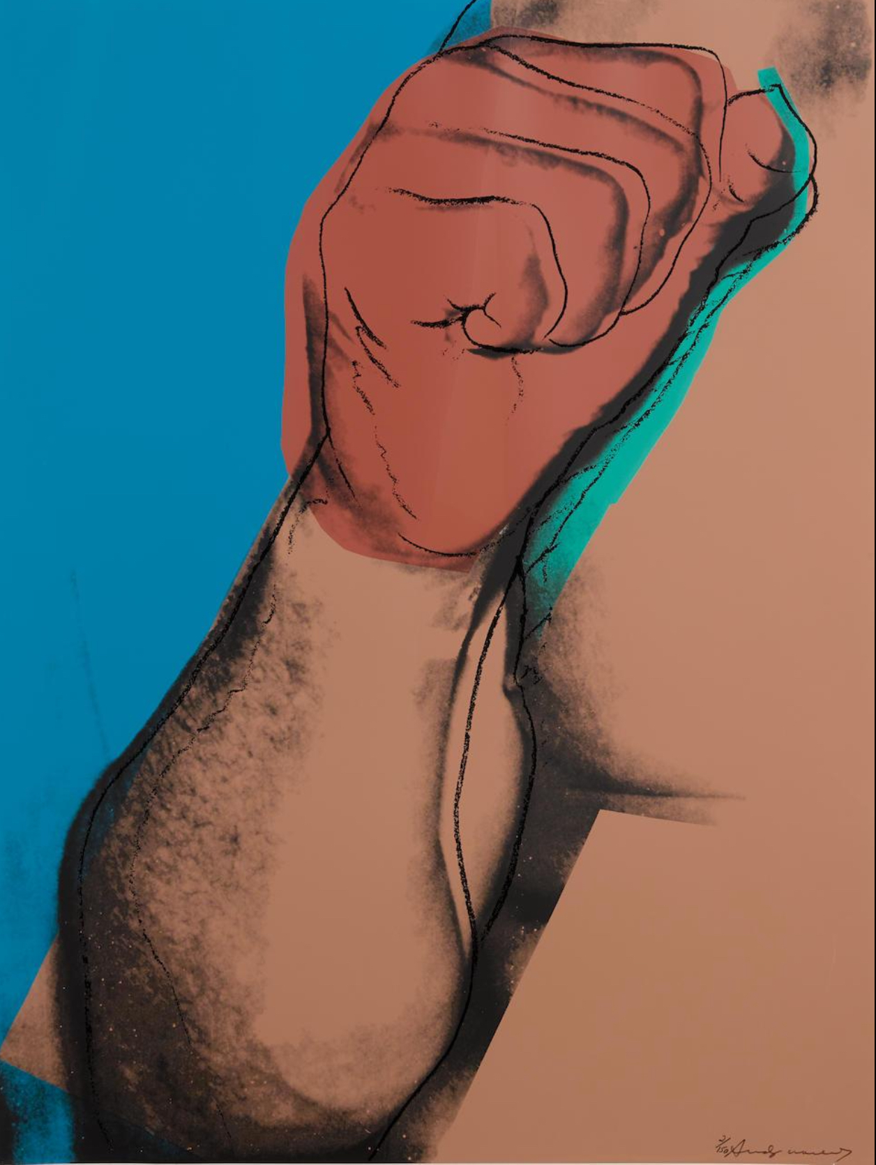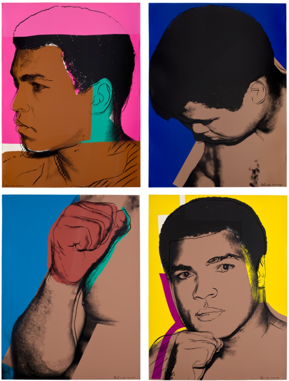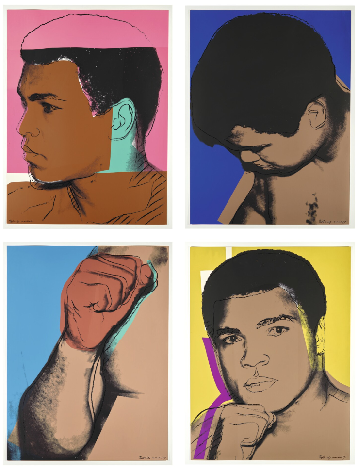 The following year, still moved by his encounter, Warhol produced this four-part suite of screenprints. Concentrating on Ali’s head and hands, Warhol isolates the dual engines of the fighter’s legend: the intellect and the body, the strategic mind and the kinetic strike. The palette—vivid, electric, and exceptionally fresh in the present example—recalls the chromatic bravura of Warhol’s 1960s icons, from Marilyn Monroe to Elizabeth Taylor, thereby elevating Ali to the realm of the quintessential Warholian celebrity.
