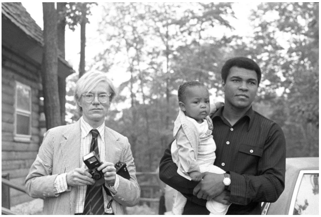 Andy Warhol and Muhammad Ali at Ali’s training camp “Fighter’s Heaven,” Deer Lake, Pennsylvania, August 1977.