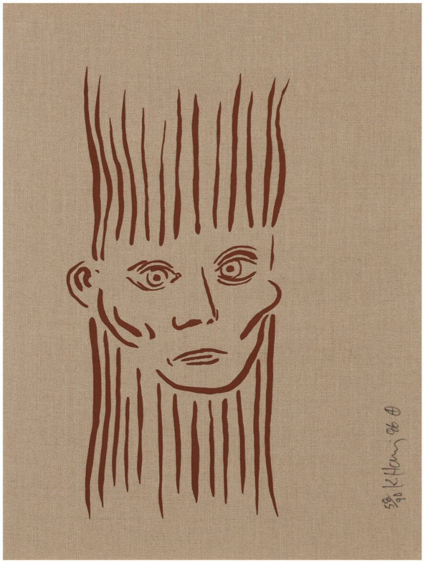 Haring depicts Beuys as an oak tree, an homage to Beuys’ installation at Documenta 7 where the artist planted 7,000 oak trees throughout the city of Kassel. Haring, who was also participating in Documenta 7, appreciated the older artist’s emphasis on creating works that would help society.