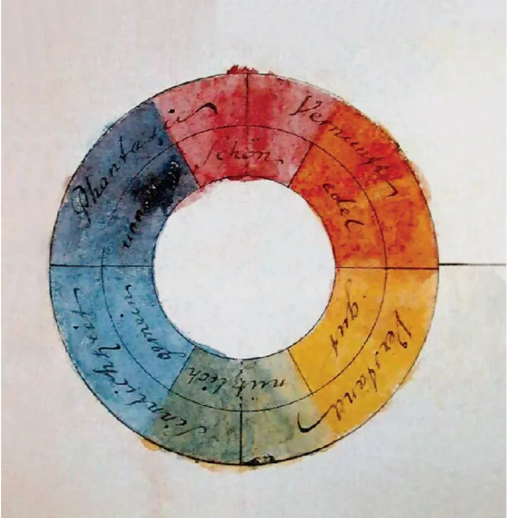 Johann Wolfgang von Goethe, color wheel with associated symbolic qualities, 1809
