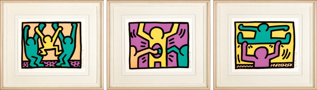 The first of Haring’s iconic Pop Shop series, Pop Shop I encapsulates Haring’s ingenuity of form and subject. Complete with his dancing figures, energy lines and an underlying sense of community and pride, it represents a culmination of Haring’s practice as an artist who believed in the importance of art being for everyone.