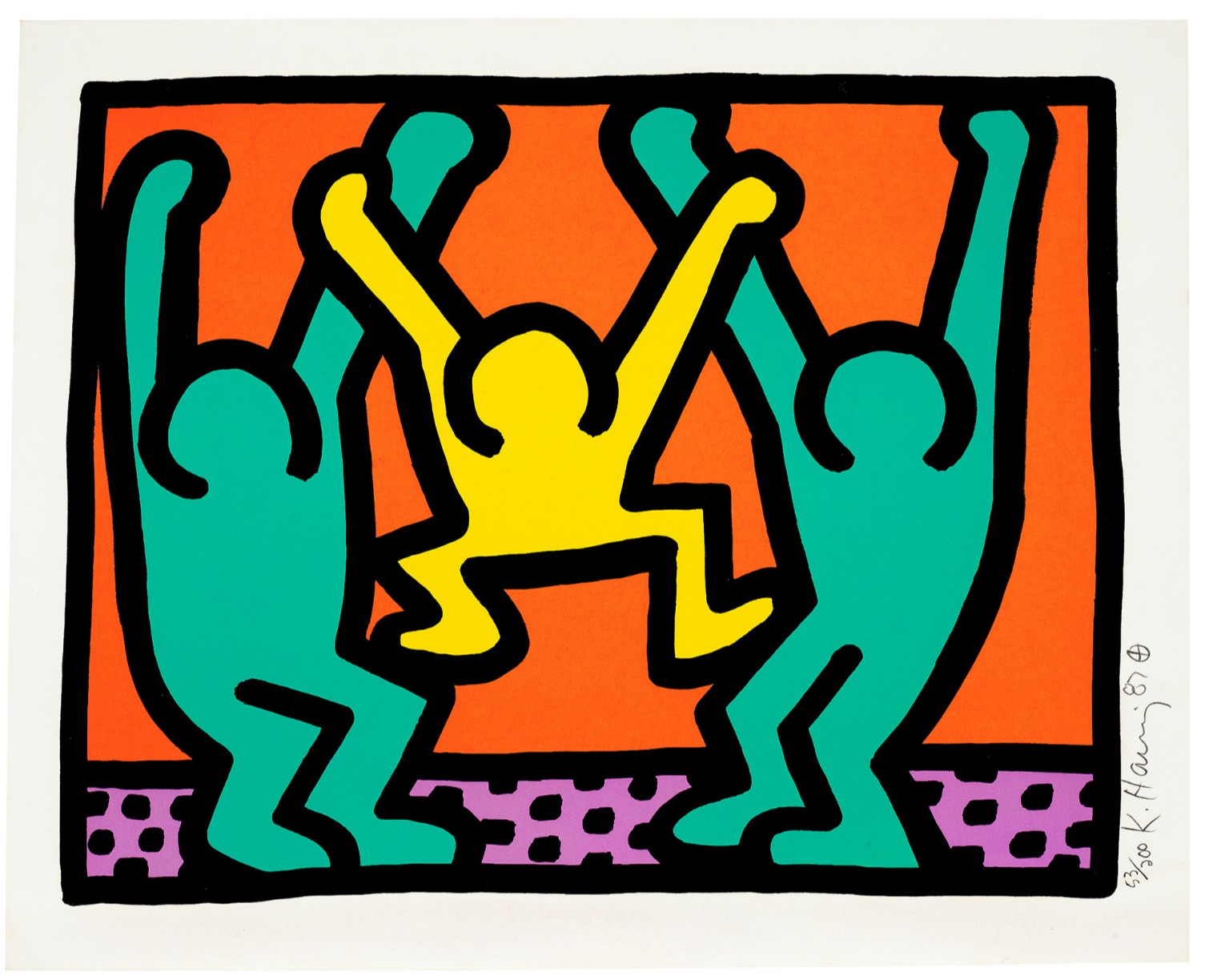 Signed in pencil Keith Haring, dated 87 and numbered 106/200 (lower right)