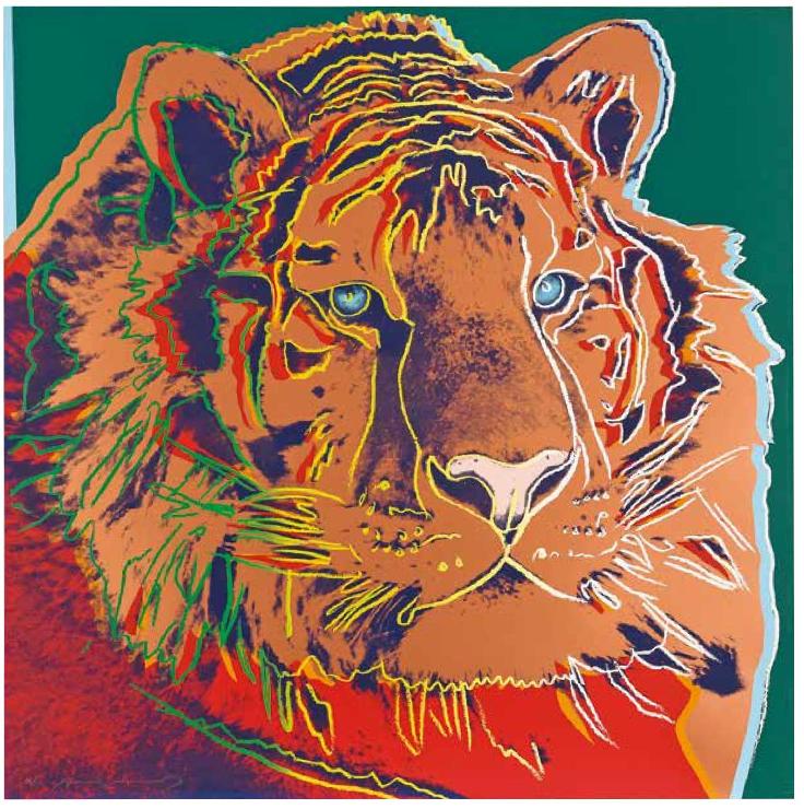 Born out of a discussion with the art dealers and long-time political and environmental activists, Ronald and Frayda Feldman, Warhol’s series Endangered Species features a portfolio of ten magnificently diverse animals from across the globe—all of which by the 1980s had been prominently featured on the Endangered Species List. Portrayed in a vibrant array of electrifying rainbow colors, Warhol’s Endangered Species series exposes the horrifying number of nearly extinct animals from African elephants to pine barrens tree frogs, giant pandas, and silverspot butterflies creating a dynamic tension between art and reality. Warhol chose himself an incredibly varied portfolio of animals for his paintings. From the Bald Eagle (National bird of America), to the small and remote population of the Sumatran Orangutan, the international appeal and interesting facts associated with Warhol’s endangered animals garnered the attention of many. The series was intended to bring attention to the world’s endangered animals. It features the Bald Eagle, Black Rhinoceros, African Elephant, Orangutan, Grévy’s Zebra, Bighorn Ram, Giant Panda, Pine Barrens Tree Frog, San Francisco Silverspot Butterfly and the Siberian Tiger.