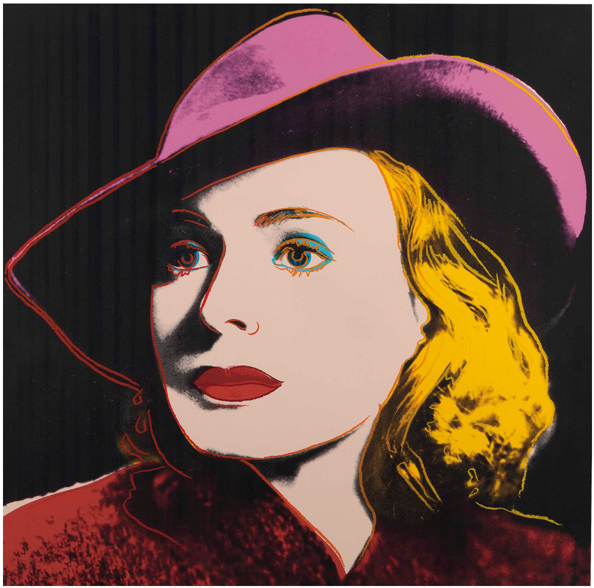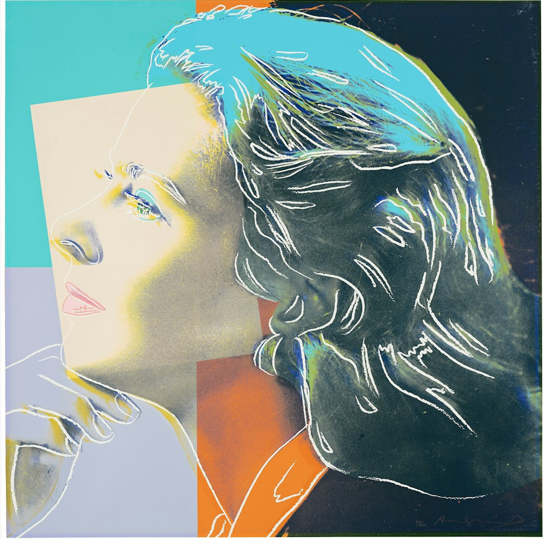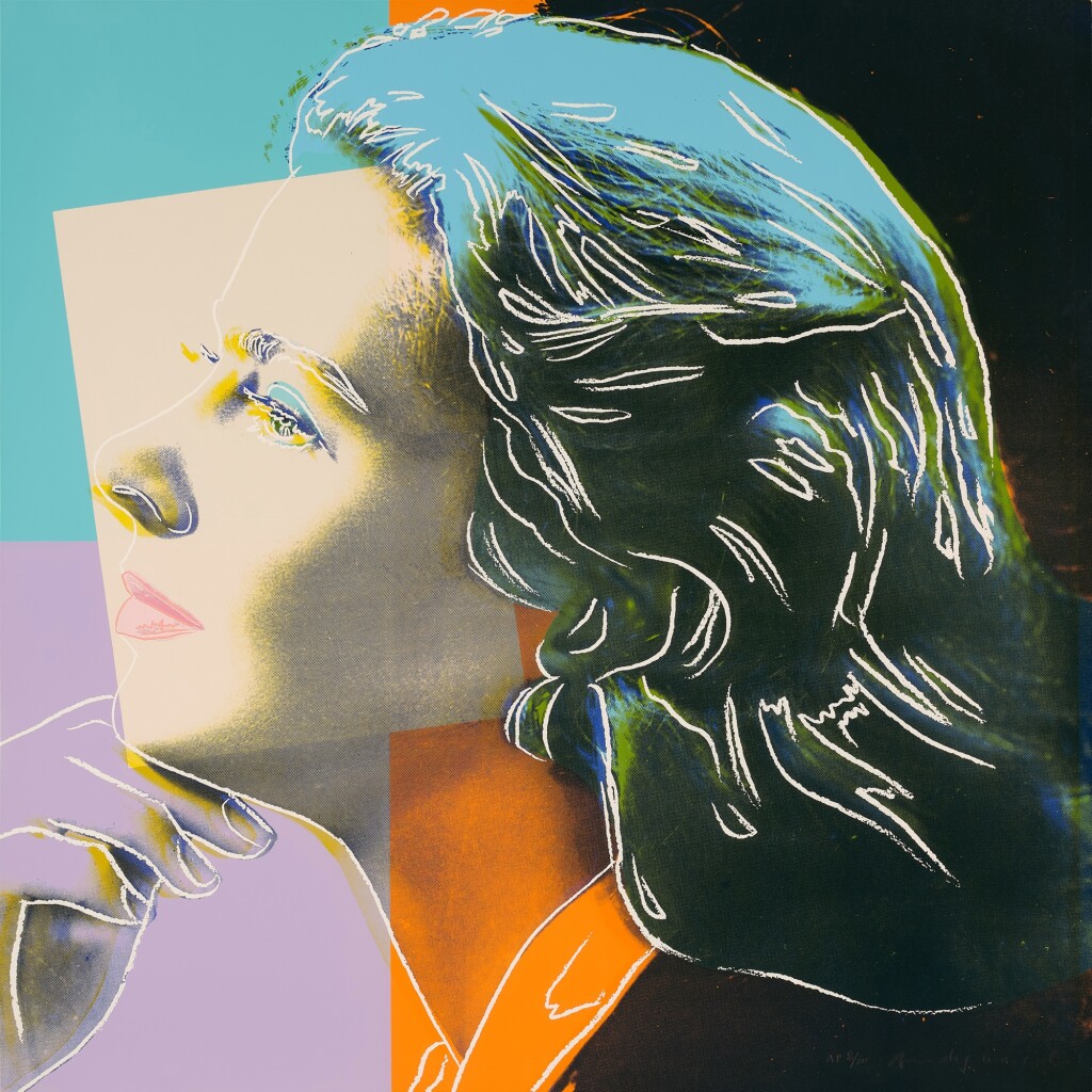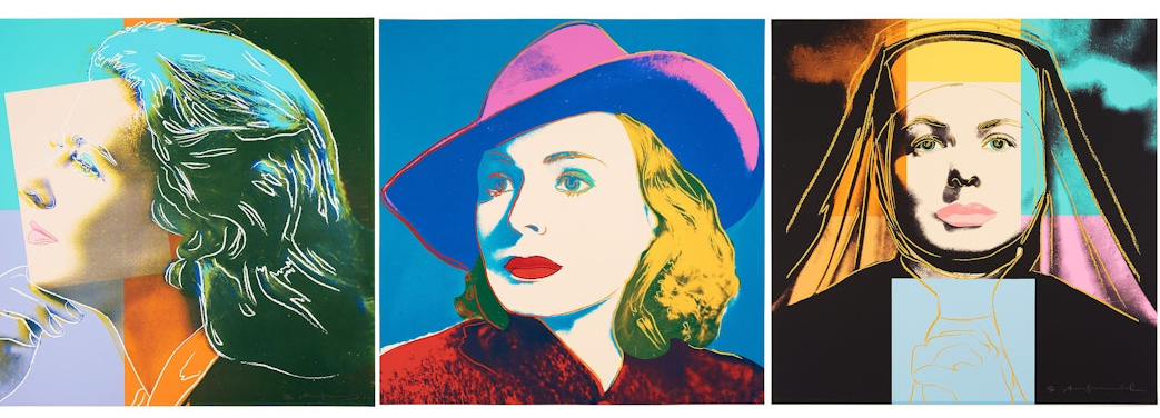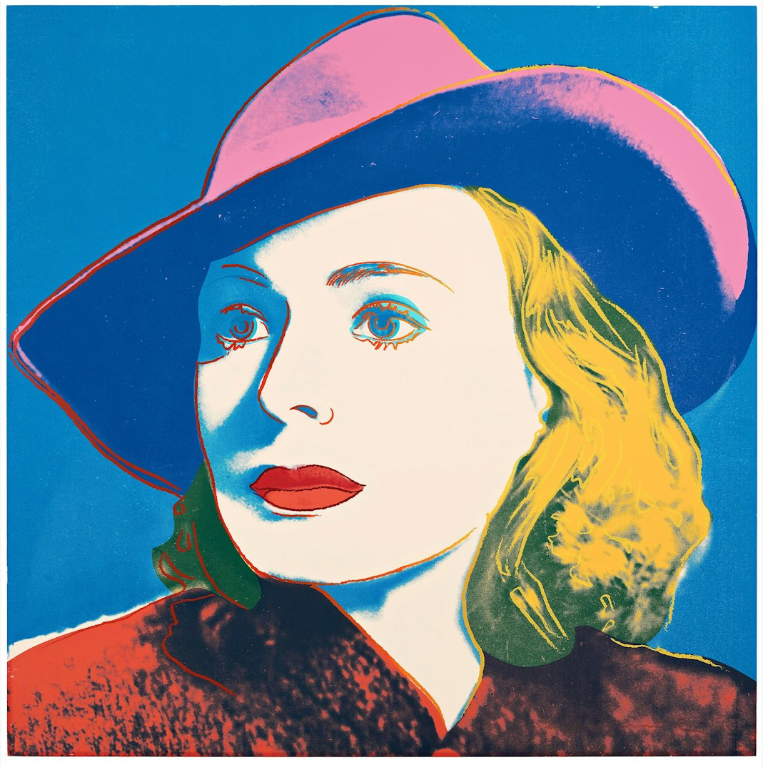 Andy Warhol created a series of three prints dedicated to Ingrid Bergman at the request of Galerie Börjeson, a Swedish gallery who later published the suite. The series, produced towards the end of Warhol’s life, showcases the artist’s enduring fascination with celebrity and the way in which fame could elevate a mere mortal to the status of goddess.