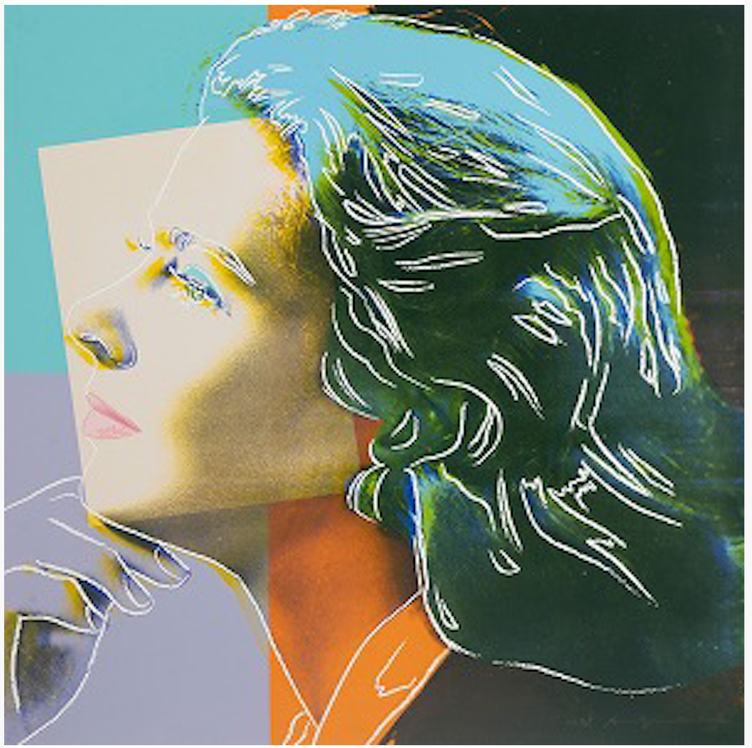 Playing with the fact that these women’s faces – from Elizabeth Taylor to Marilyn to Ingrid Bergman – were available everywhere, in newspapers, on posters and on television. Warhol set about appropriating them for his own art, painting their portraits in an easily reproducible medium. Where once he would have been a highly successful court painter, making portraits in oils of the most fashionable figures of his time, from the ’60s to the ’80s Warhol used the Factory to produce hundreds, if not thousands, of images of these stars, contributing in no small part to the celebrity obsessed culture we are still living in today.