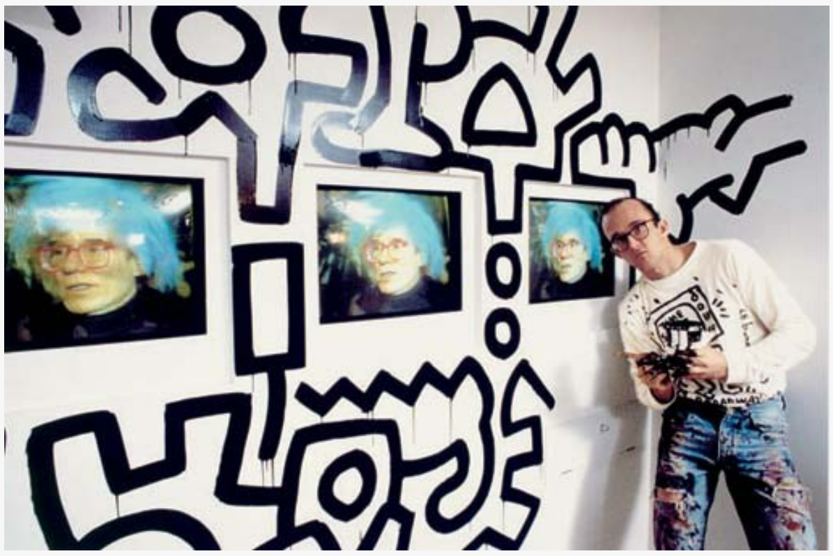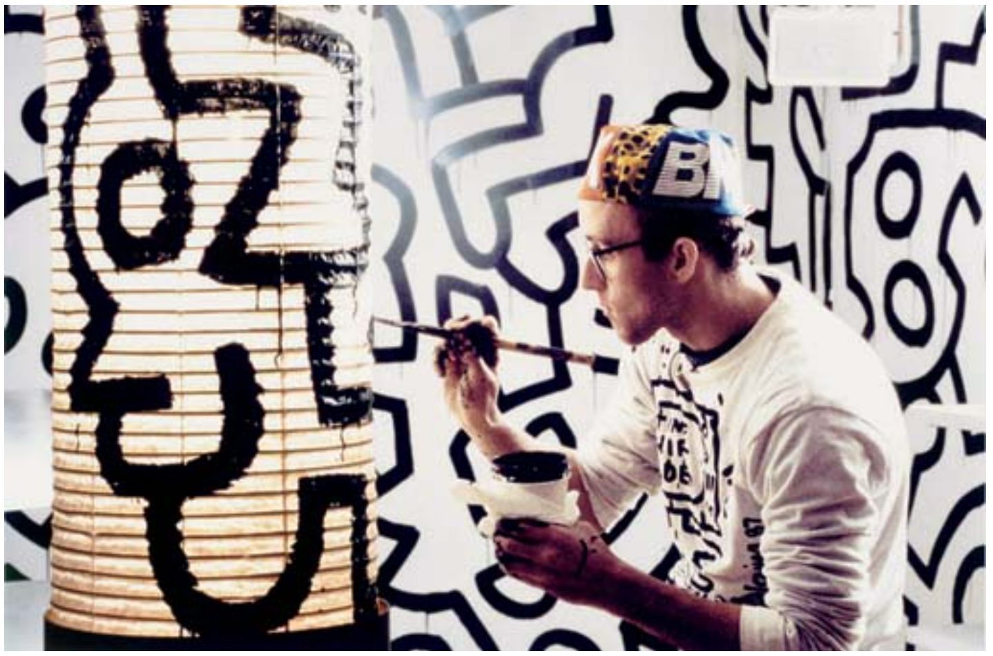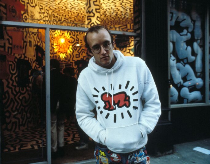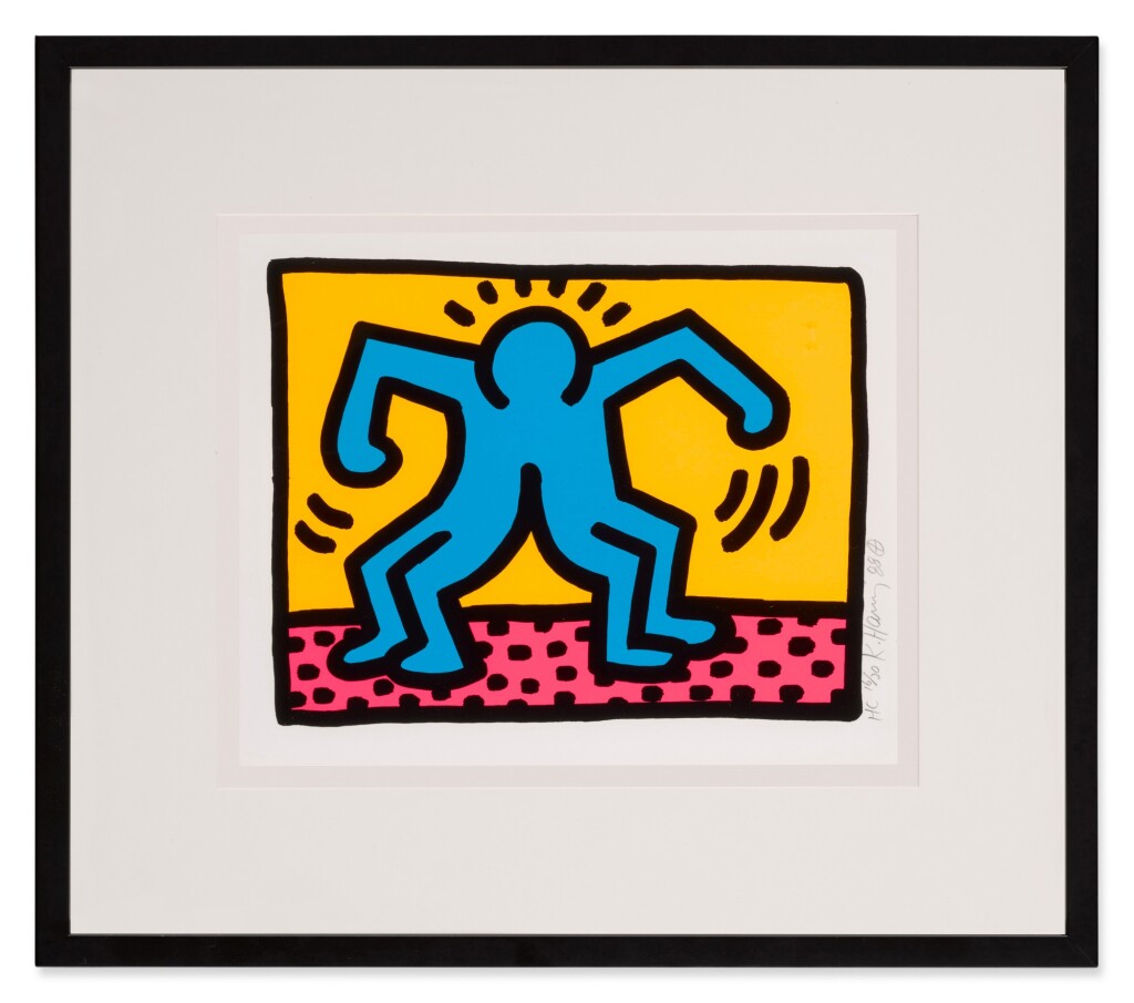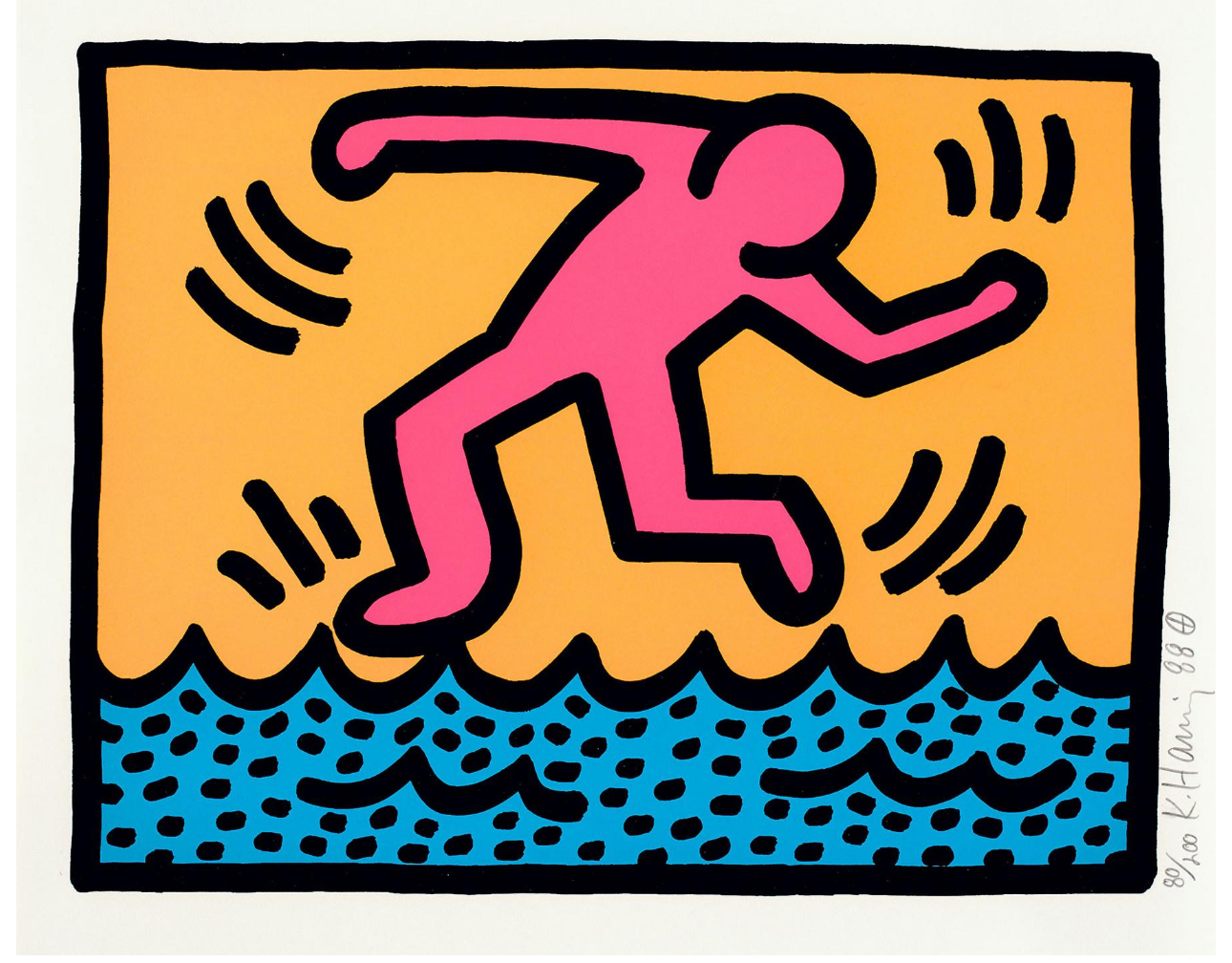 His love for commercial and Pop art was evident in his first experiments with street art which saw him creating signature figures he named ‘icons’, such as the barking dog, the radiant child and the winged superman. He would reproduce these figures over and over again, in bright colors reminiscent of advertising and later, just before his death from AIDS in 1990, in plain white embossings.