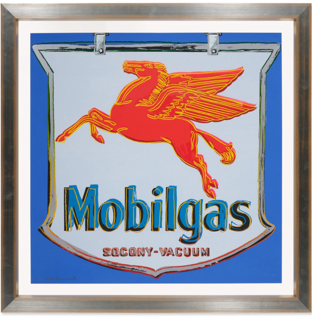 Using vivid hues, flat planes of color, and spirited linework, prints in Warhol’s Ads Series transform popular advertisements into individual works of art. The series consists of 10 images which clearly merge Warhol’s commercial advertising skills with his artistic mastery