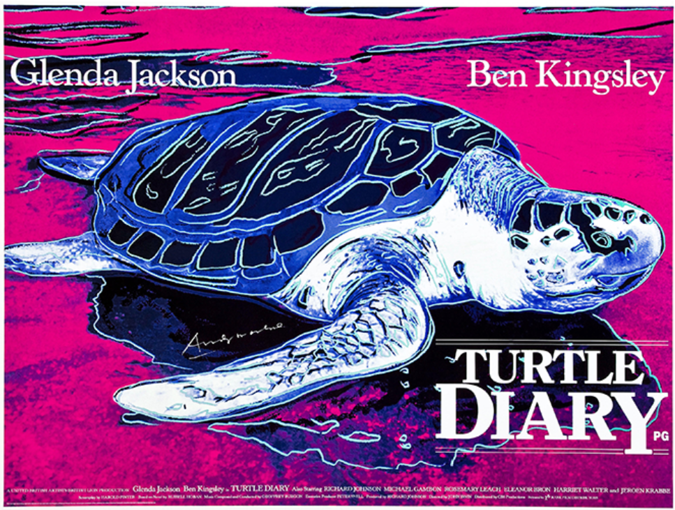 Delighted by the film and the resulting Turtle screenprint, Warhol expressed his gratitude in particular to the film’s director, John Irvin by gifting him the present lot in 1986 in thanks for his role in the commission. No stranger to interpreting the work of great writers, Irvin began his career by directing a number of award-winning documentaries and television works, including the hugely successful BBC adaptation of John le Carré’s Tinker Tailor Soldier Spy, starring Alec Guinness. For the next thirty years, Irvin made Hollywood feature films including Dogs of War (1980) starring Christopher Walken and Tom Berenger, followed by the horror film Ghost Story (1981) starring Fred Astaire, Melvyn Douglas, Douglas Fairbanks Jr. and John Houseman; and the biographical Champions (1984) starring John Hurt. Following these serious subject matters, Turtle Diary gave Irvin the chance to flex his comedic muscles and revel in the joyful storyline of love, freedom and a passionate celebration of the natural world. Irvin’s enthusiasm in directing this story is echoed in the immense success the film enjoyed, and in the exuberant and detailed depiction of the film’s protagonist in Warhol’s saturated, colorful screenprint.