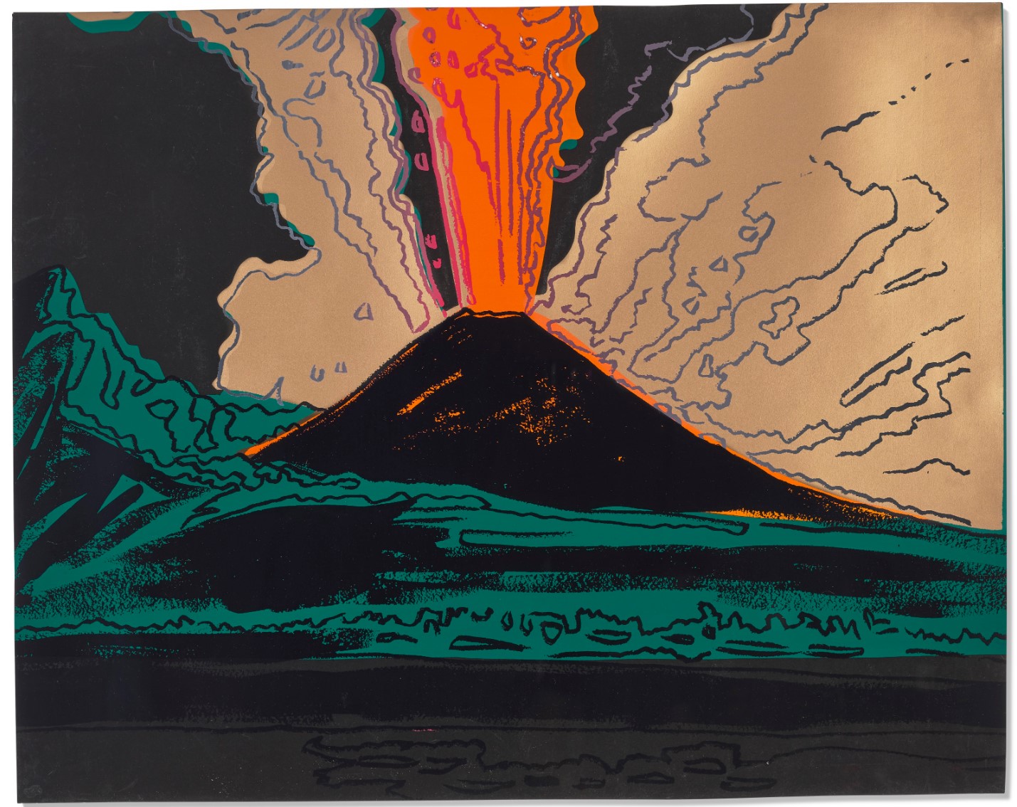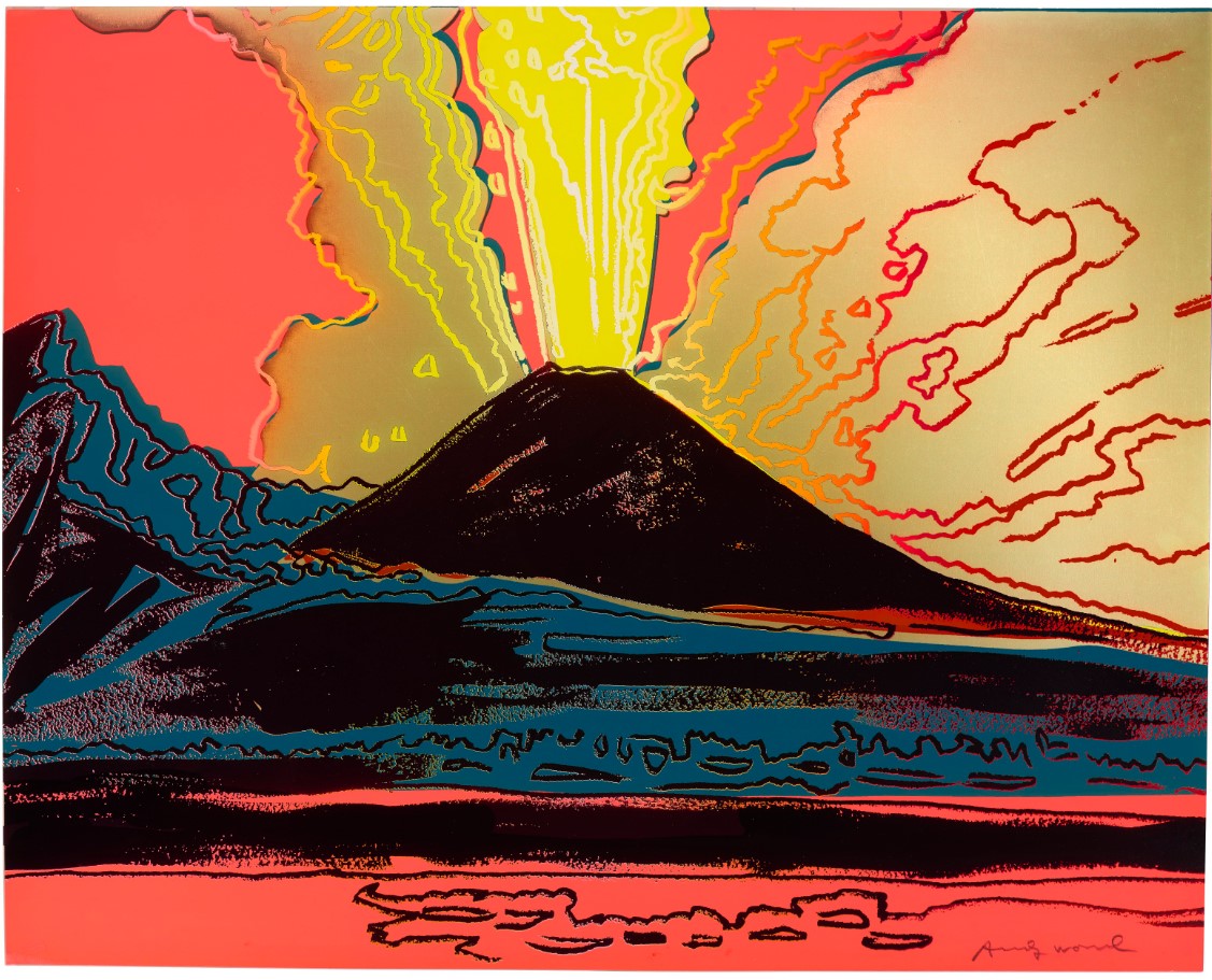 Completed for a solo exhibition in the esteemed Museo di Capodimonte in Naples, Vesuvius features an image of the legendary Mount Vesuvius erupting to create an energetic and dynamic composition. On display in a space typically reserved for the old masters and classical landscapes, Warhol reworks the traditional, romanticized Neapolitan imagery of Vesuvius and transforms it into a Pop Art icon.