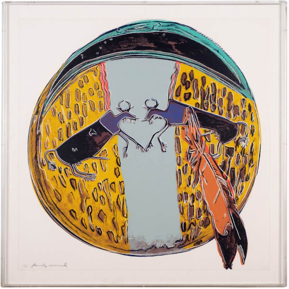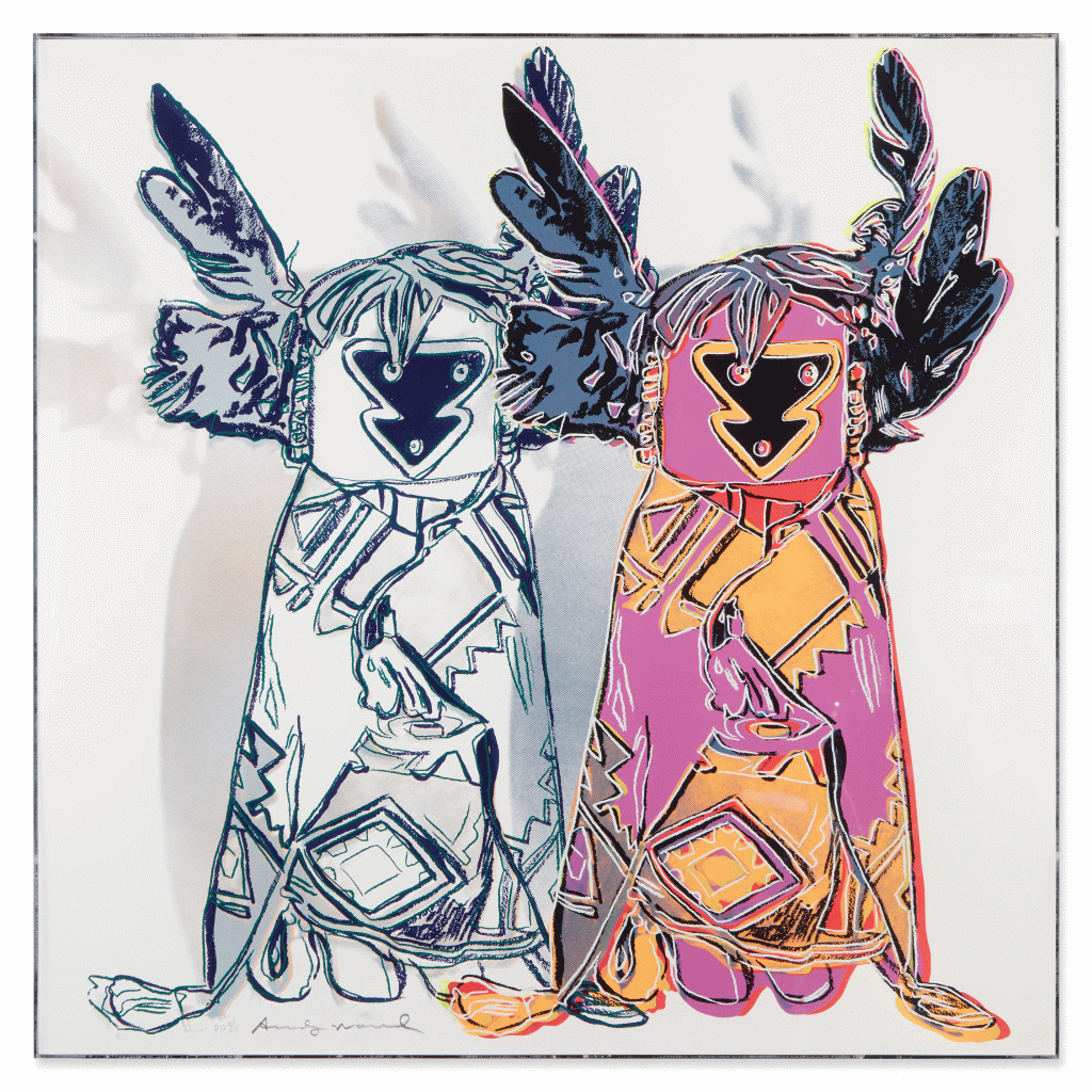 - Appropriation and Commodification: The inclusion of actual Native American artifacts (like the Kachina Dolls and shield—based on photos Warhol took at the Smithsonian National Museum of the American Indian) draws attention to the exploitation and commodification of Indigenous culture and sacred objects.