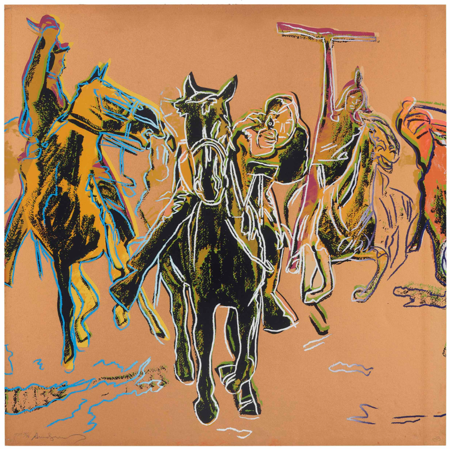 The series reflects Warhol’s long-standing fascination with the Western genre and Americana, dating back to his earlier works and his experimental 1968 film, Lonesome Cowboys. Created in the mid-1980s, the work is a late example of his engagement with American identity and cultural critique through the lens of Pop Art.