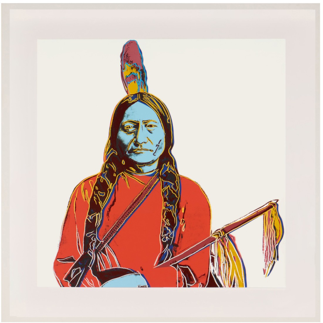 - Media and Stereotypes: By filtering the subjects through his silkscreen technique, Warhol suggests how mass media and commercial imagery (from film stills, postcards, and old photographs) shape collective memory and perpetuate stereotypes about Native Americans. He subtly challenges these stereotypes by using an archival photo of the real Geronimo, for example, rather than a caricature.