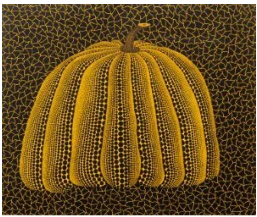 For Kusama, the pumpkin is more than just a vegetable; it is a deeply personal symbol. She views pumpkins as a form of self-portraiture, often citing their “generous unpretentiousness” and “solid spiritual balance”. The motif stems from her family’s background as seed nursery owners, representing stability, warmth, and a connection to her roots in Matsumoto. Kusama uses the repetitive application of polka dots as a means of “self-obliteration,” helping her manage the hallucinations and trauma she has experienced since childhood.