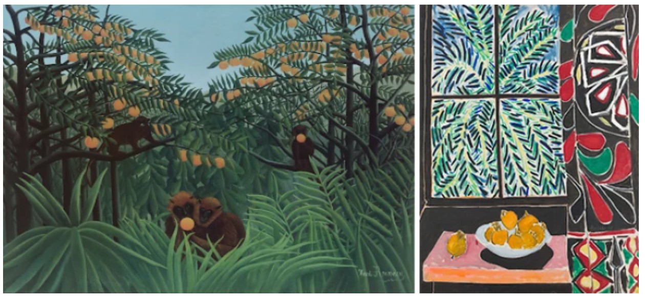 Left: Henri Rousseau, Monkeys in the Jungle (The Tropics), 1910. Private Collection. Image © Bridgeman Images