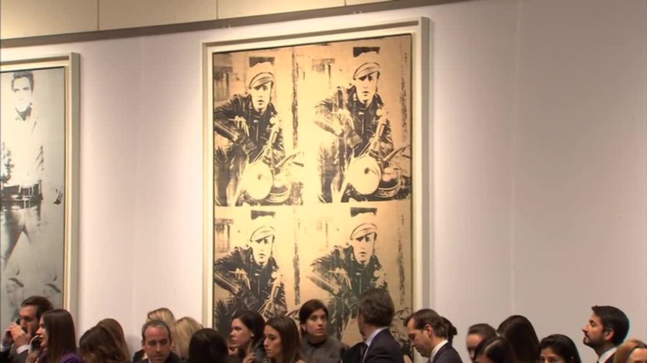 Leaning languidly on his motorcycle’s handlebars and dressed in the iconic leather jacket of his role as the menacing and rebellious biker-gang leader Johnny Strabler in The Wild One, Andy Warhol’s portrait of Marlon Brando celebrates the brooding image of the actor that set the style for an entire generation. Taken from a publicity still of Brando for this highly influential and controversial 1953 film, Warhol’s appropriated figure occupies the right-hand edge of the deliberately unprimed canvas. Adopting the dark undercurrent of Warhol’s other celebrity portraits, Brando personifies violence, volatility and anti-establishment subversion. As exemplified in Marlon, Brando’s machismo is reflected in Warhol’s use of the unprimed canvas. The inherent rawness of his chosen support combined with the clarity of this particular screen produces an image that, after nearly five decades, still has unrivalled power and presence. Through the terseness of his own dialogue, Brando’s character embodies some of his own Warholian traits. Evident none so much as in perhaps the film’s most famous line, when Kathie (the film’s heroine) asks, “What are you rebelling against?” to which Brando’s ‘Johnny’ opaquely replies, “What’ve you got?” Johnny’s all-out, motiveless, empty war on the status quo has parallels in the gauntlet that Warhol himself would take up with Pop almost a decade later. With this painting, Warhol not only celebrates the glamour and excitement of the silver screen but also taps into an intoxicating age during which time the phenomenon of the American teenager was born.