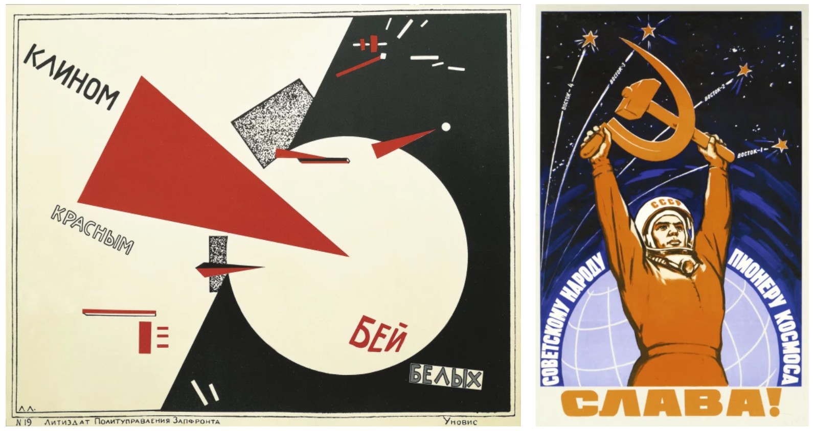 Left: El Lissitzky, Beat the Whites with the Red Wedge, 1919. Russian State Library, Moscow
