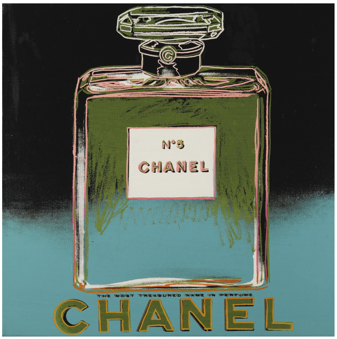 Chanel captures the tremendous influence consumer culture had on Warhol’s work. This canvas depicts a Chanel No. 5 perfume bottle. Using minimal colors, unlike some of the other, bolder canvases in the Ads series, pink gestural lines accentuate the bottle’s sleek and chic design. Rendered in pink against a purple backdrop, Warhol exaggerates how the Chanel bottle became emblematic of consumerism, femininity and sophistication.