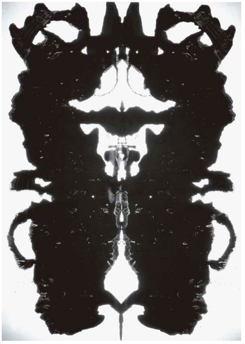 The compositions that Warhol used to create his Rorschach were totally improvised. He was not aware that he could simply copy Hermann Rorschach’s set of ten inkblot designs, so he asked his assistant Jay Shriver to create a small set of four inkblots. Though the original inkblots developed by Rorschach included colored ink, Warhol deliberately limited his palette in order to enhance the subliminal and emotive content of his inky black forms.