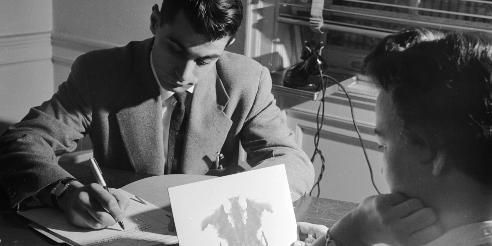 RORSCHACH INK BLOT TEST AT HEADACHE CLINIC IN MONTEFIORE HOSPITAL, C. 1950. PHOTO BY ORLANDO /THREE LIONS/GETTY IMAGES
