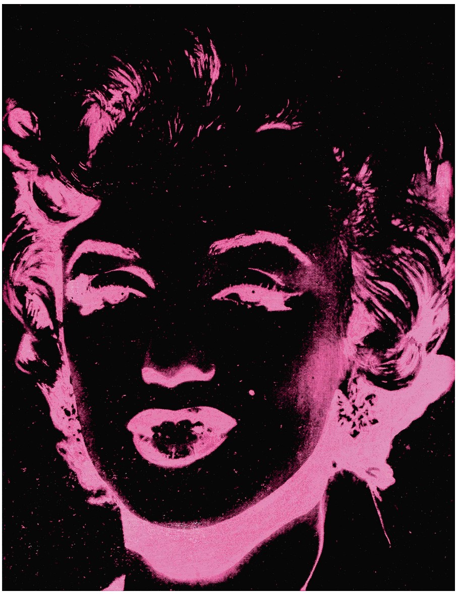 In Pink Marilyn (Reversal) , the familiar features of the glamorous movie star glow in an electric bubble gum pink tone against the saturated black of the screened image. The instantly recognizable features of the actress are clearly visible despite the minimum means with which they have been rendered. Warhol was a tireless innovator, and the negative images that he used in the Reversal Series show his continuing willingness to experiment.