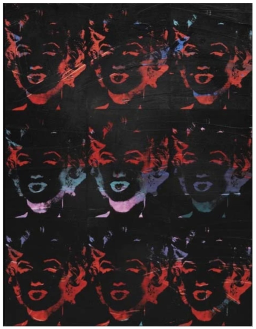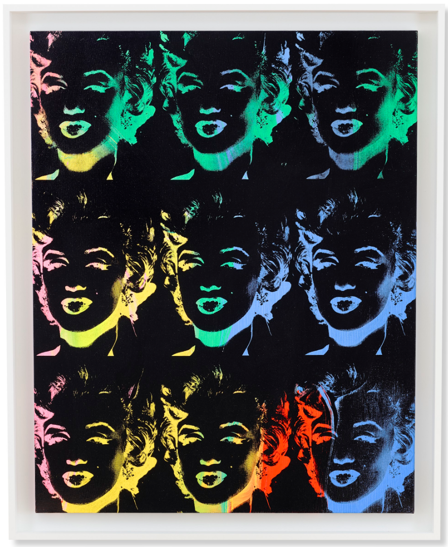 The final years of Monroe’s life were marked by illness, personal problems and a reputation for unreliability. In fact, even the circumstances of her death, from an overdose of barbiturates, have been the subject of conjecture. Though officially classified as a “probable suicide,” the possibilities of an accidental overdose or homicide have not been ruled out. And yet, regardless of her tragic demise, Monroe’s image is just as strong today as it was at the height of her career. In 1999, Monroe was ranked as the sixth-greatest female star of all time by the American Film Institute. In the decades following her death, she has often been cited as both a pop and a cultural icon as well as the quintessential American sex symbol. Central to his pantheon of Pop icons, which included Elizabeth Taylor, Jackie Kennedy and Elvis, Nine Multicolored Marilyns (Reversal Series) provides a more nuanced immortalization of Marilyn Monroe as the embodiment of the cult of celebrity.