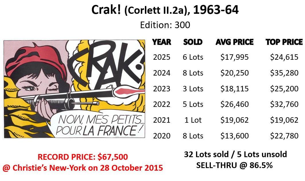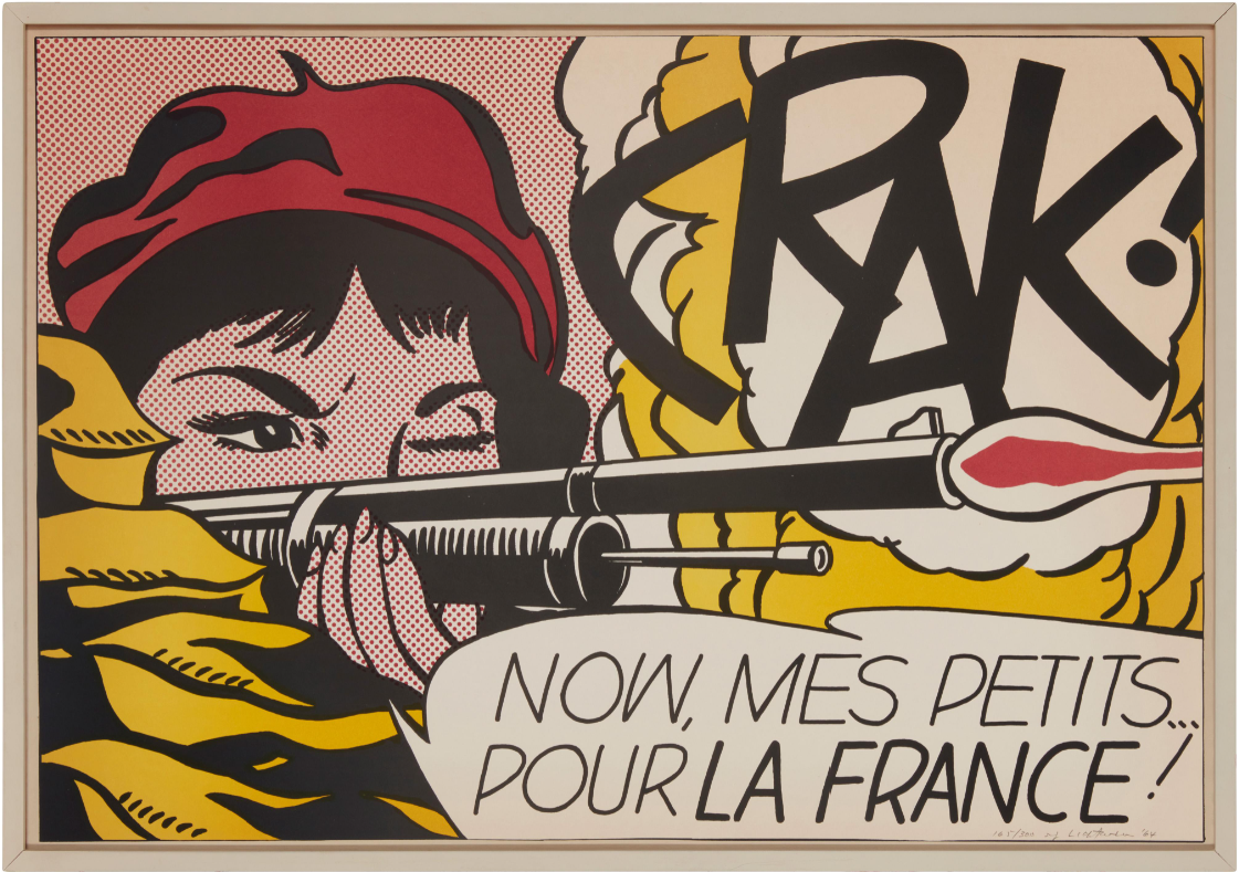 Crak! occupies a critical position within Lichtenstein’s early output. As both a promotional poster and an editioned print, it sits at the intersection of art and communication: perfectly aligned with the artist’s interest in blurring those boundaries. It is not the loudest image in Lichtenstein’s oeuvre, but it is among the most precise. And in that precision lies its strength: a distilled statement on how images, of war, of identity, of belief, are constructed, framed, and ultimately believed.