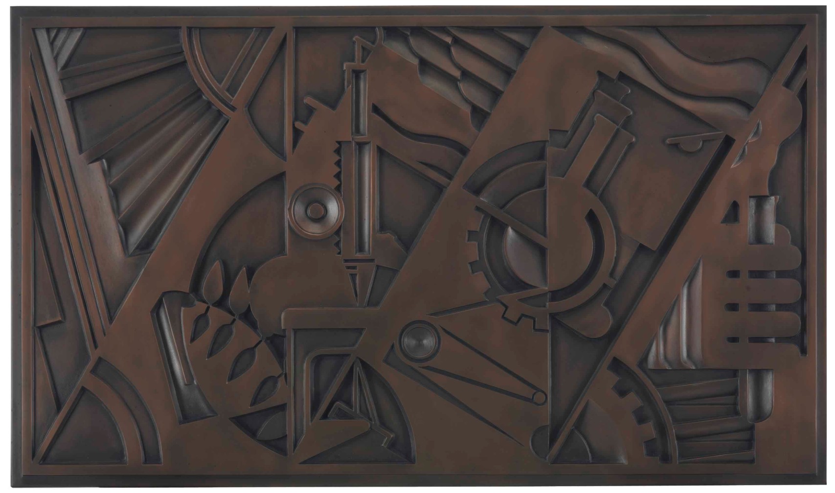 In parallel to the prints, Lichtenstein developed a bronze version of Peace Through Chemistry, translating the same graphic composition into sculptural form. This shift in medium profoundly alters the work’s nature: what was originally conceived within the logic of mechanical reproduction becomes a weighted, tactile object associated with permanence and art historical tradition. The Ben-Day dots and linear structures, previously optical and printed, are rendered in relief, turning illusion into physical presence. This transformation introduces a deliberate tension between Pop’s language of mass production and the singular authority of sculpture. Where the prints engage with circulation, surface, and reproducibility, the bronze reads almost as a monument—less a promise of progress than a frozen reflection on it. Together, the two versions articulate a precise conceptual opposition, extending Lichtenstein’s inquiry into systems, media, and the fragile credibility of modern ideals.