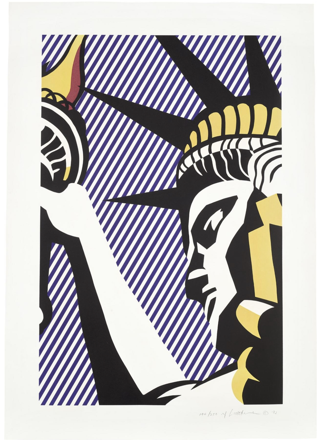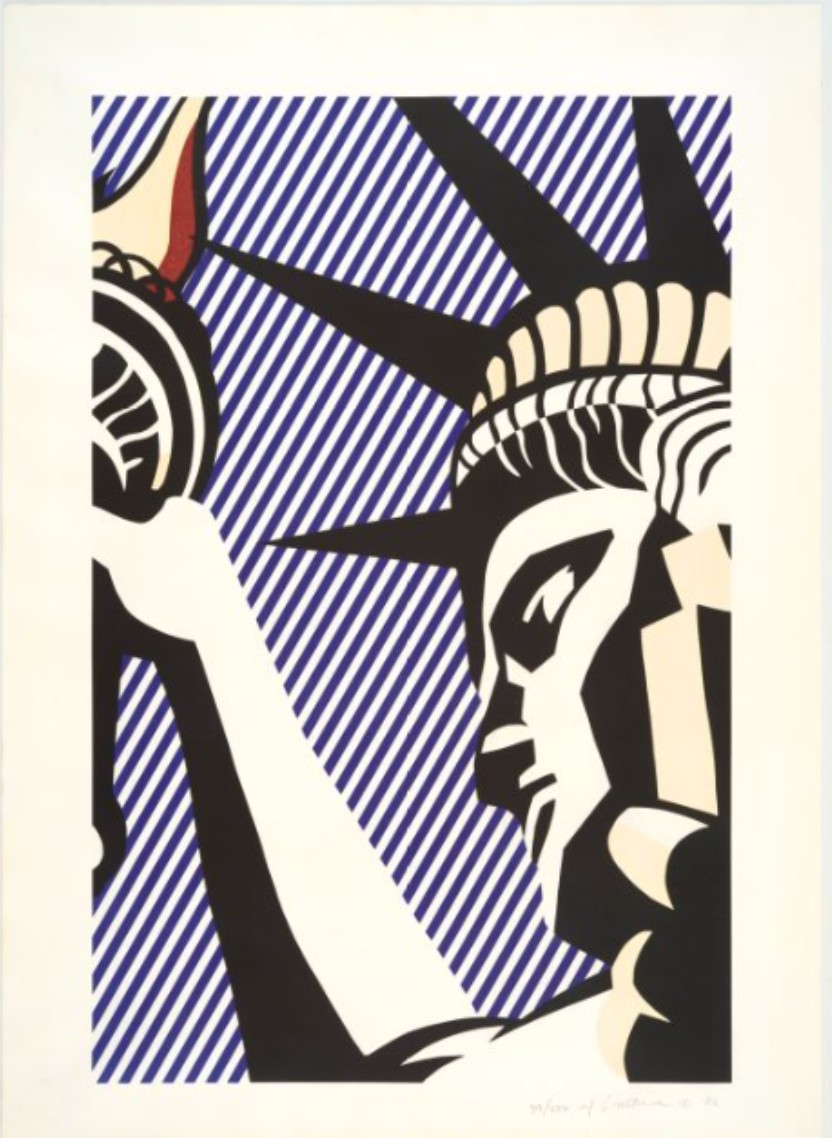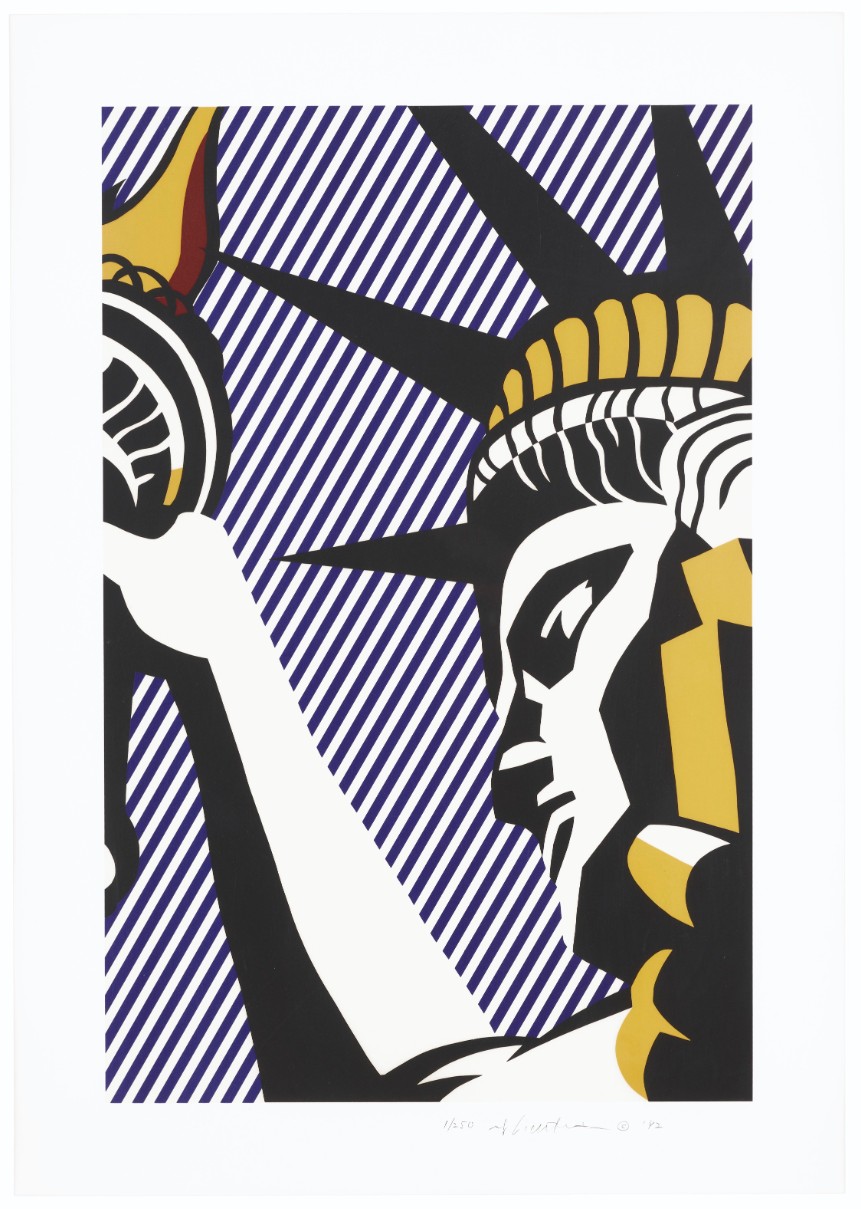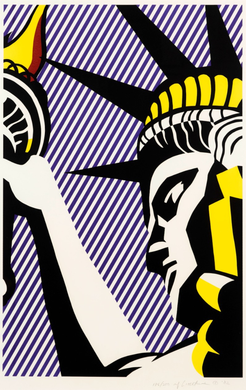 The print was created in 1982 as part of a broader engagement with American identity and national symbols. By this stage, Roy Lichtenstein had moved beyond direct comic imagery and was increasingly incorporating cultural and historical references into his work. The use of the Statue of Liberty situates the print within a lineage of American iconography, while the print medium reinforces his ongoing interest in reproduction and clarity.