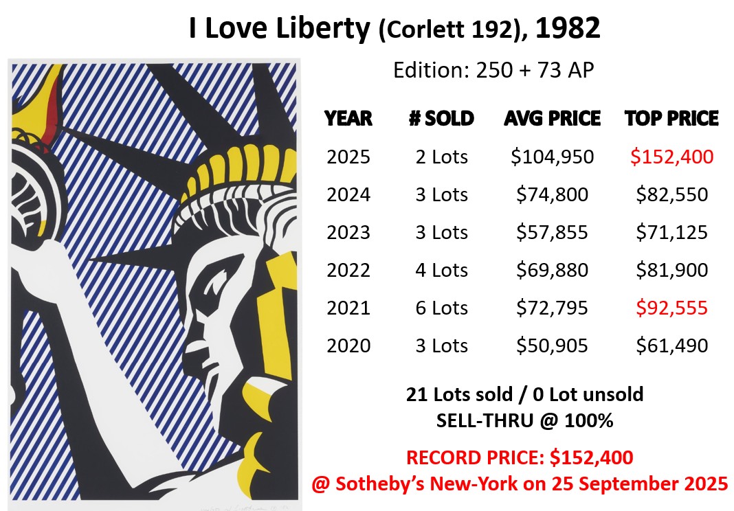 | 2025 | AP 8/73: USD 152,400 @ Sotheby’s New-York on 26 September 2025 AP 12/73: USD 57,500 @ Heritage Auctions on 22 April 2025 |