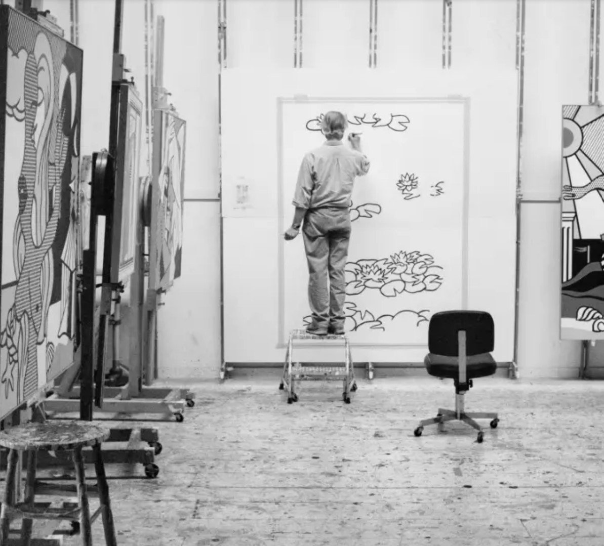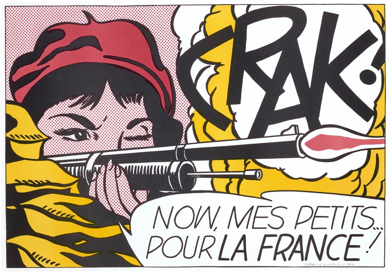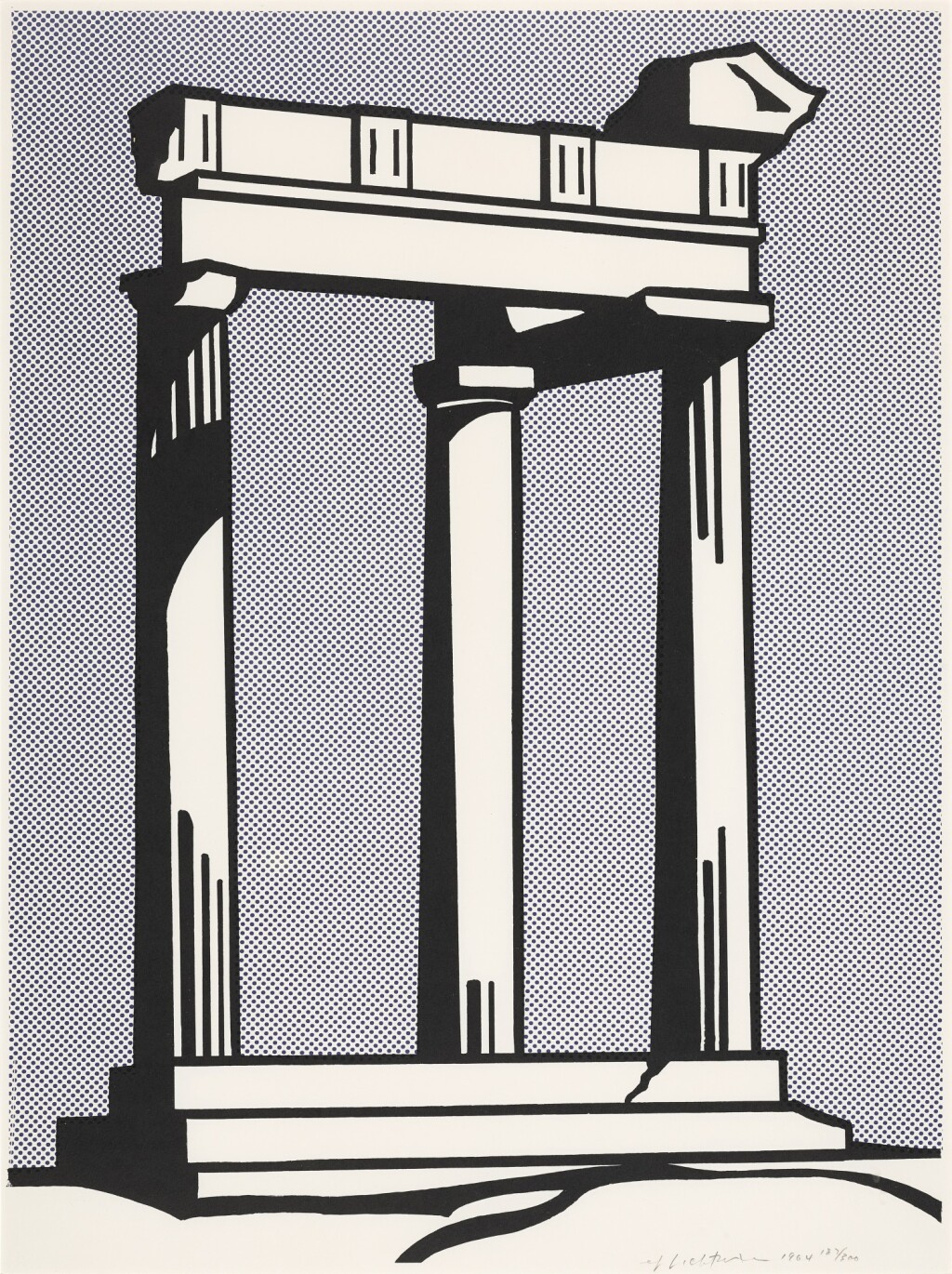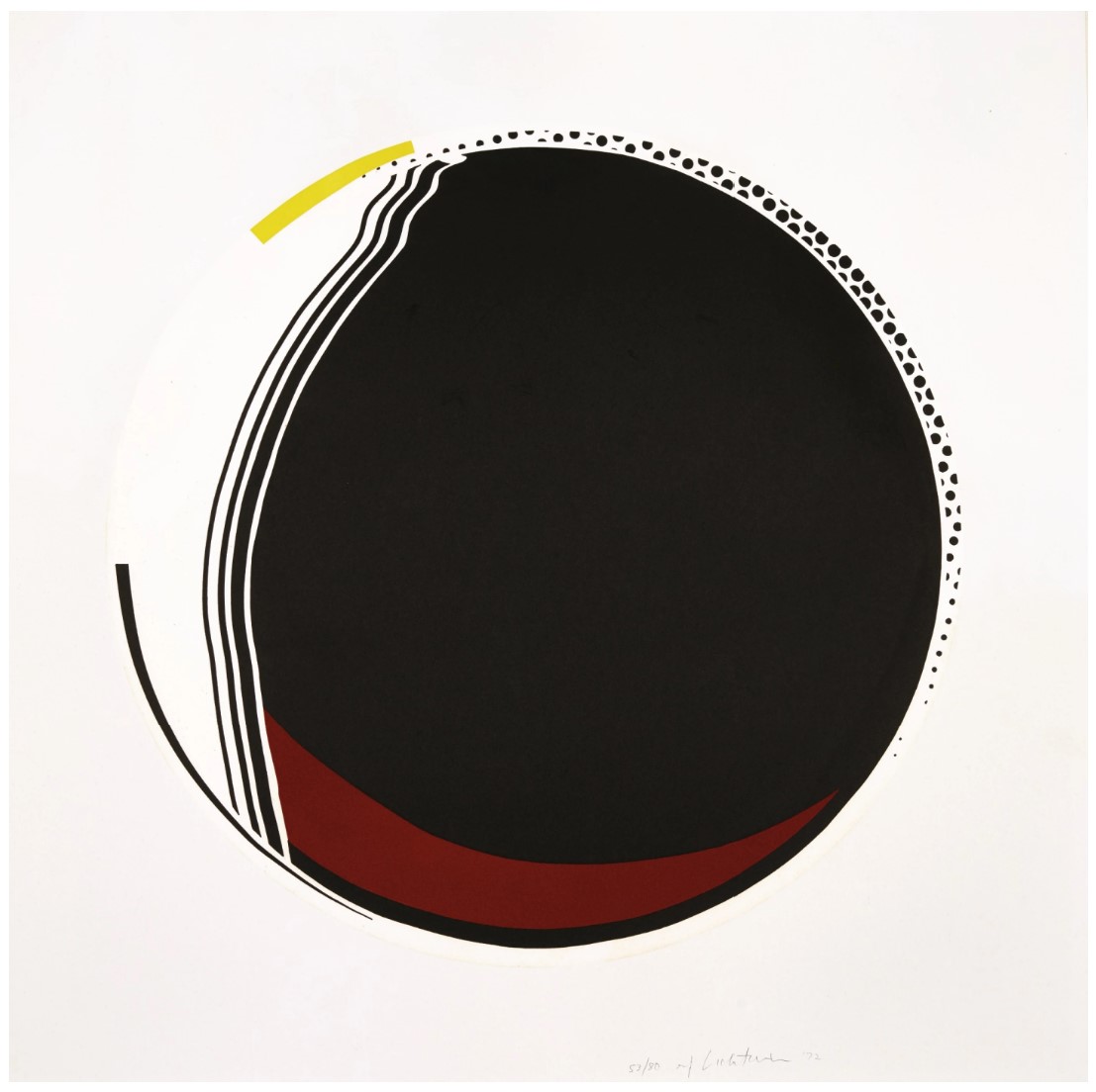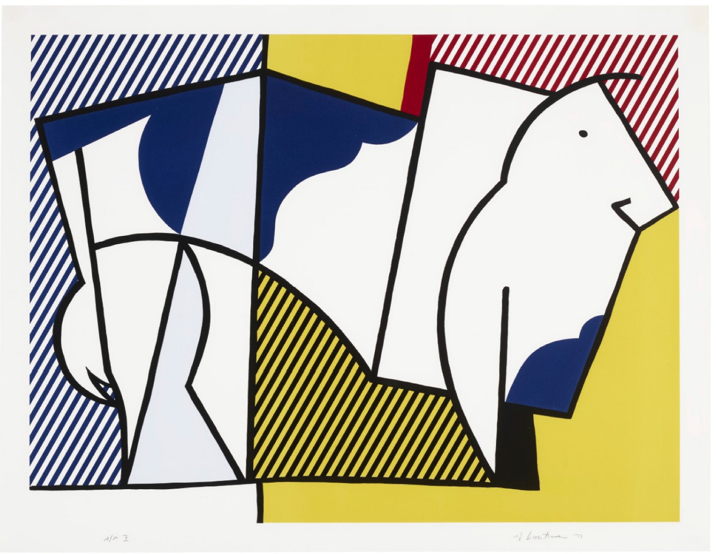 Roy Lichtenstein is one of the originators of the Pop Art movement, famed for paintings that take kitsch and transform it into culture. Lichtenstein was born in New York City in 1923. Growing up, he took art classes at the Art Student League where he created realist paintings. Lichtenstein continued his study of art at Ohio State University but, with the advent of World War II, he enlisted in the army in 1943. Lichtenstein returned to Ohio State after the war to finish his master’s degree in studio art. While Lichtenstein was teaching art at Rutgers University, he became close with fellow artist Allan Kaprow, who introduced him to Claes Oldenburg. It was during the 1960s that Lichtenstein began experimenting with what would become his signature style of taking images from comic books and newspapers and reproducing them on a large scale, calling attention to the flatness of the imagery with his Ben-Day technique of painting dots. In 1962, Lichtenstein got his first break with a one-man show at the Leo Castelli Gallery, which sold out before it opened.