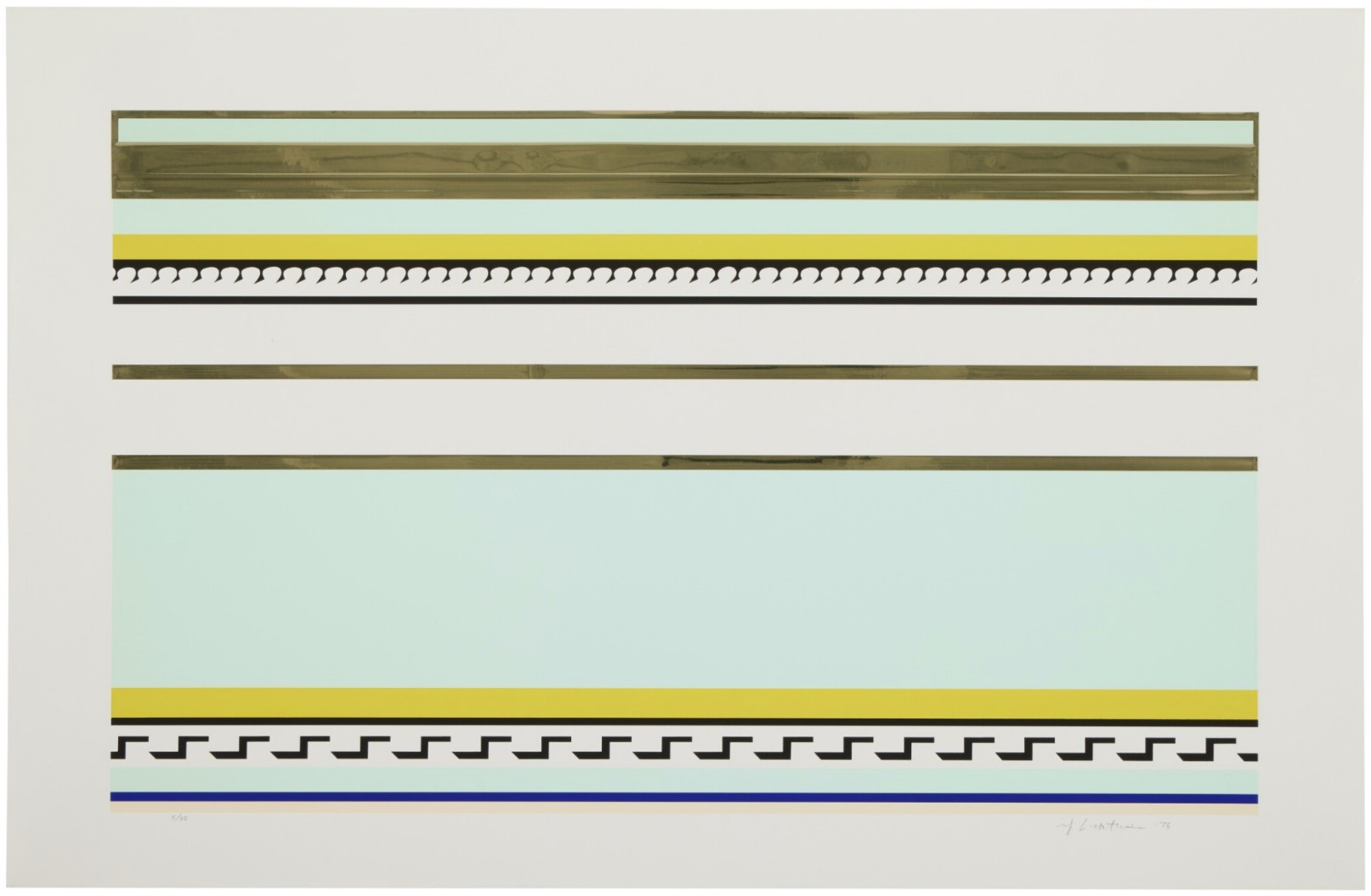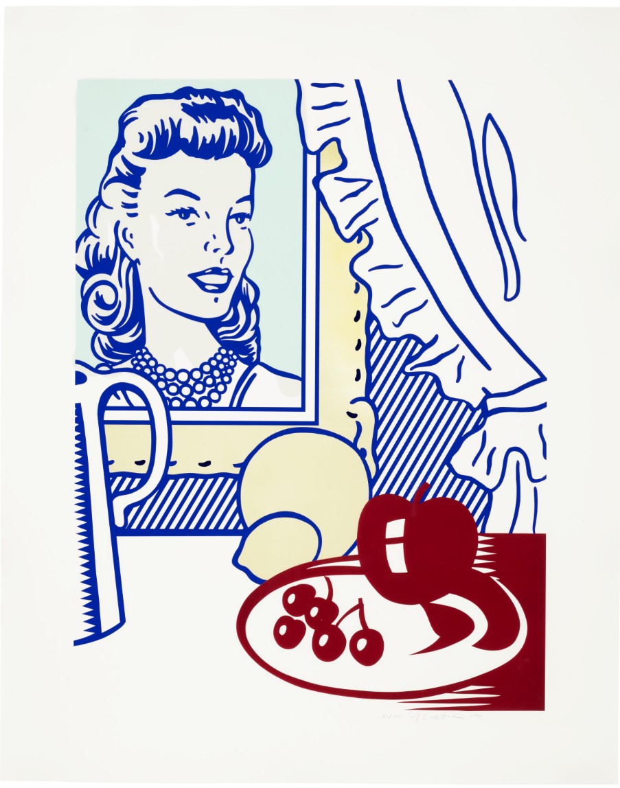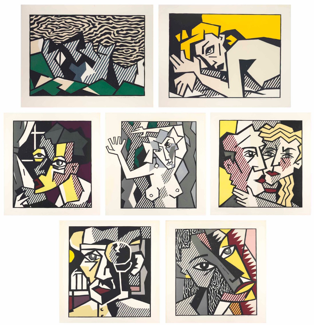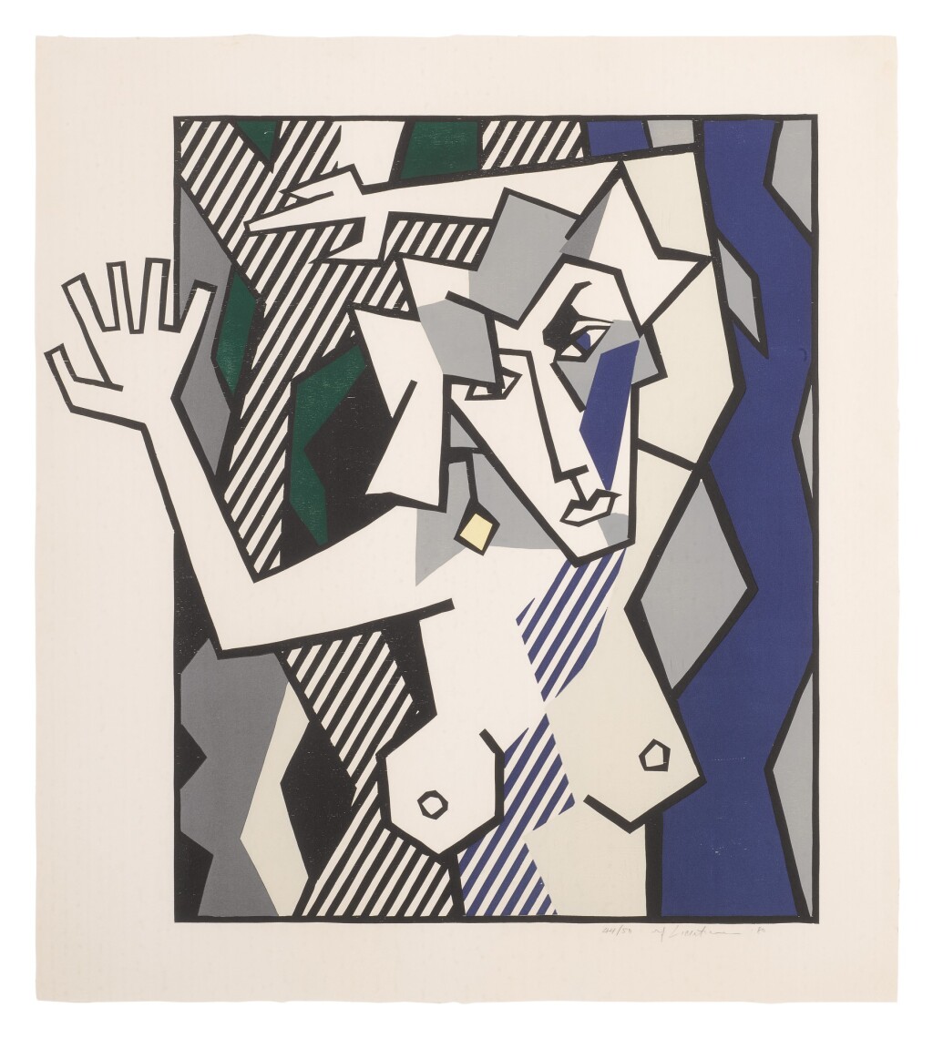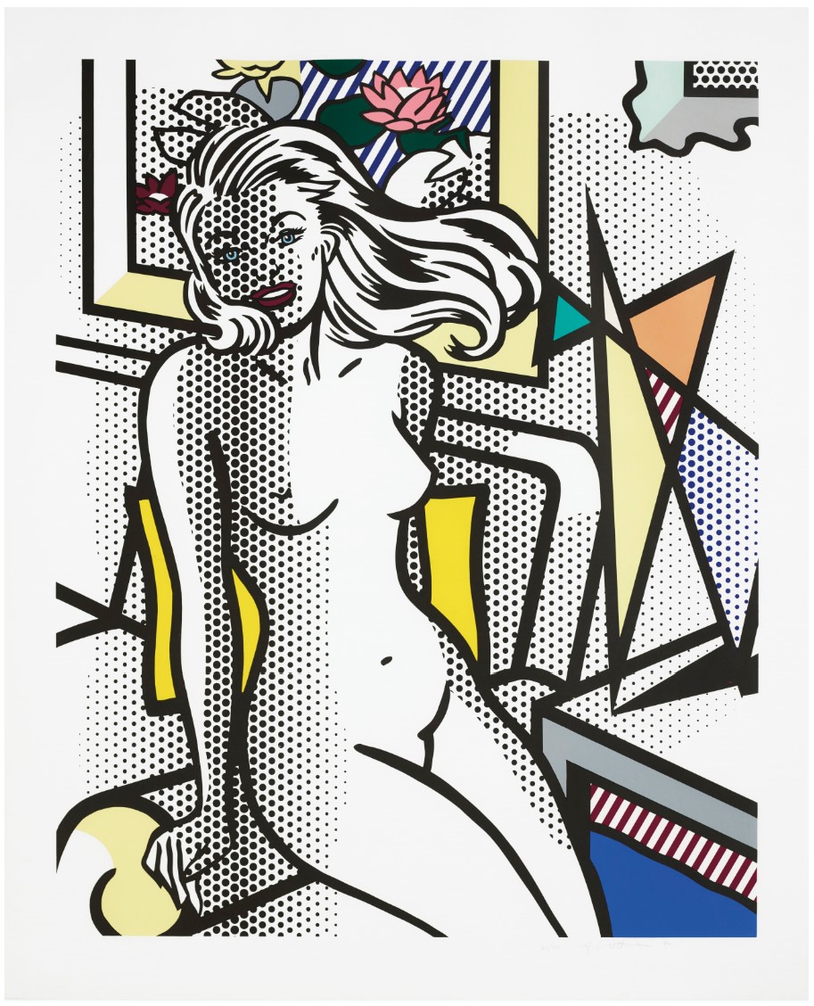 Roy Lichtenstein’s Nudes Series was the final major series the artist produced before his death in 1997. The nine prints consider the traditional art historical genre of the female nude through the lens of Pop Art and mark Lichtenstein’s return to his iconic 1960s comic book style, consisting of Benday dot patterns, bright colors, and bold lines. Published and printed by Tyler Graphics Ltd., Mount Kisco, New York, Lichtenstein referenced his own oeuvre, integrating motifs found in earlier works from the Reflections, Imperfect, Water Lily, and Interiors Series. After four decades of radically probing fundamental questions of art and artmaking, it was apt for him to select the female nude as a symbol of returning to the beginning of both his oeuvre and art history.