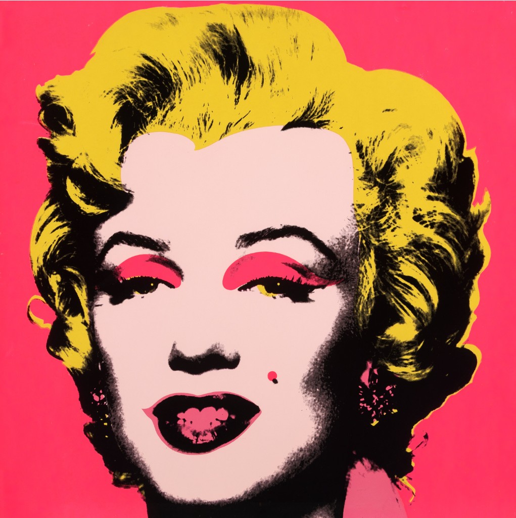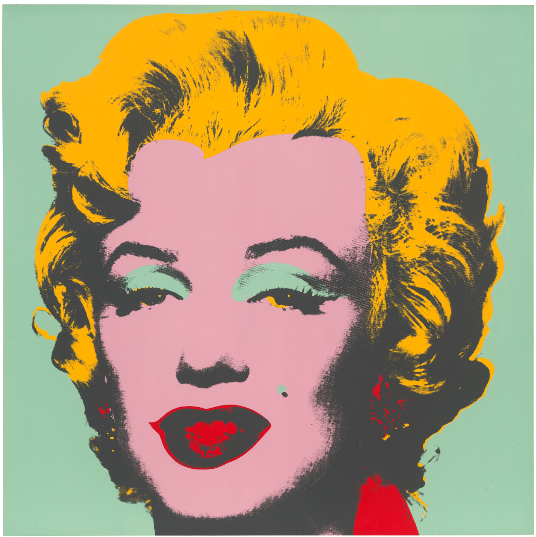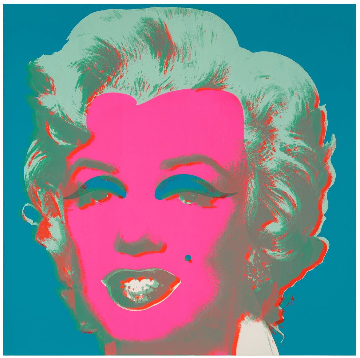 For Andy Warhol, Marilyn Monroe was the perfect interplay of personal tragedy and beauty. The world was captivated by the actress; newspapers provided access to her life through a steady stream of front-page articles and black and white photos. Indeed, Monroe possessed a tragic romance balanced with a striking naivete that gave her a magnetic pull. Warhol’s Marilyn Monroe (Marilyn) captures a juxtaposition of allure and sadness that characterized the life of the actress; the Technicolor wash over the black and white structure of her visage is applied as make-up, masking her true identity, yet memorializing her forever.