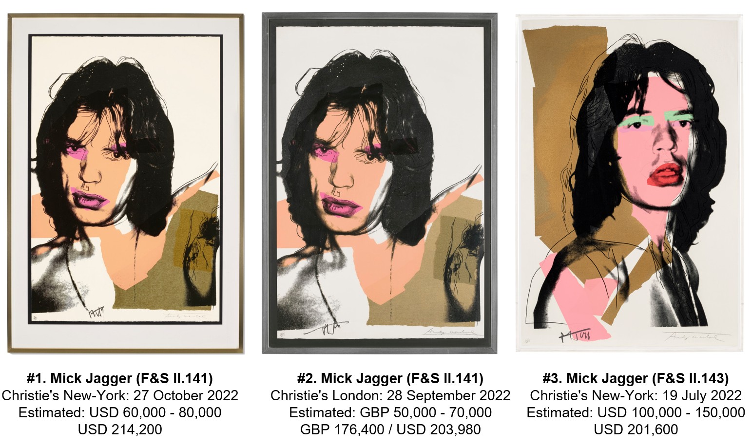 The highest price of USD 378,000 was achieved by Marylin (F&S II.24) that sold at Phillips in New-York on 21 April 2022 and Marilyn (F&S II.23) that sold at Christie’s in New-York on 13 May 2022.