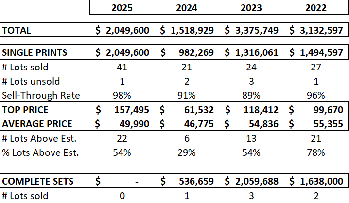 724 Prints sold at auction in 2025 for a total turnover of USD 42,108,734.
