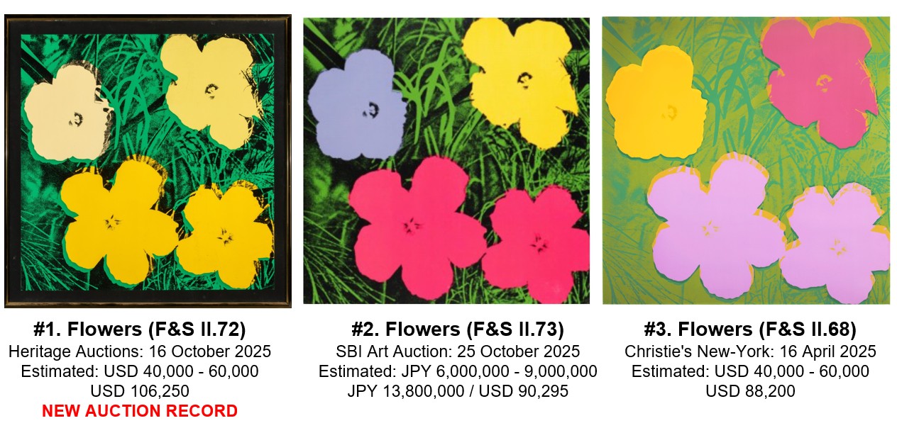 - Marilyn (F&S II.29): sold at Sotheby’s in London on 24 September 2025 for GBP 165,100 (USD 222,125).