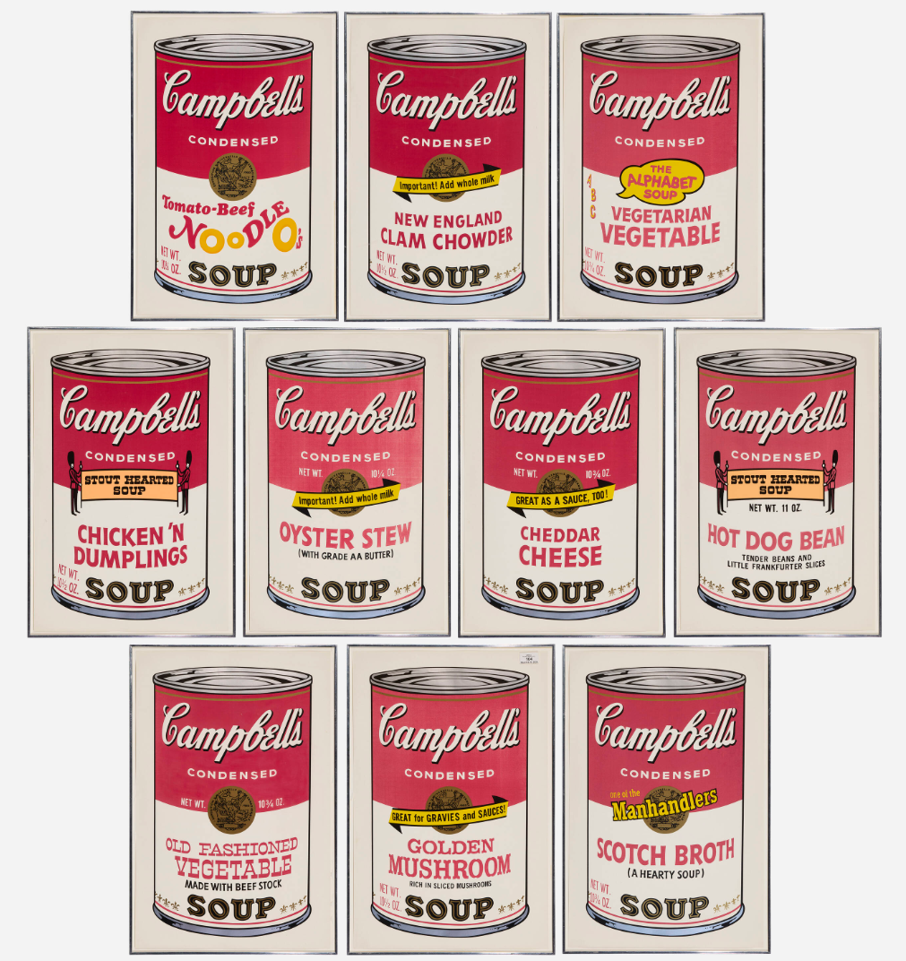 Furthermore, one complete set of Campbell’s Soup II sold at Abell on 9 March 2024 for USD 475,000.