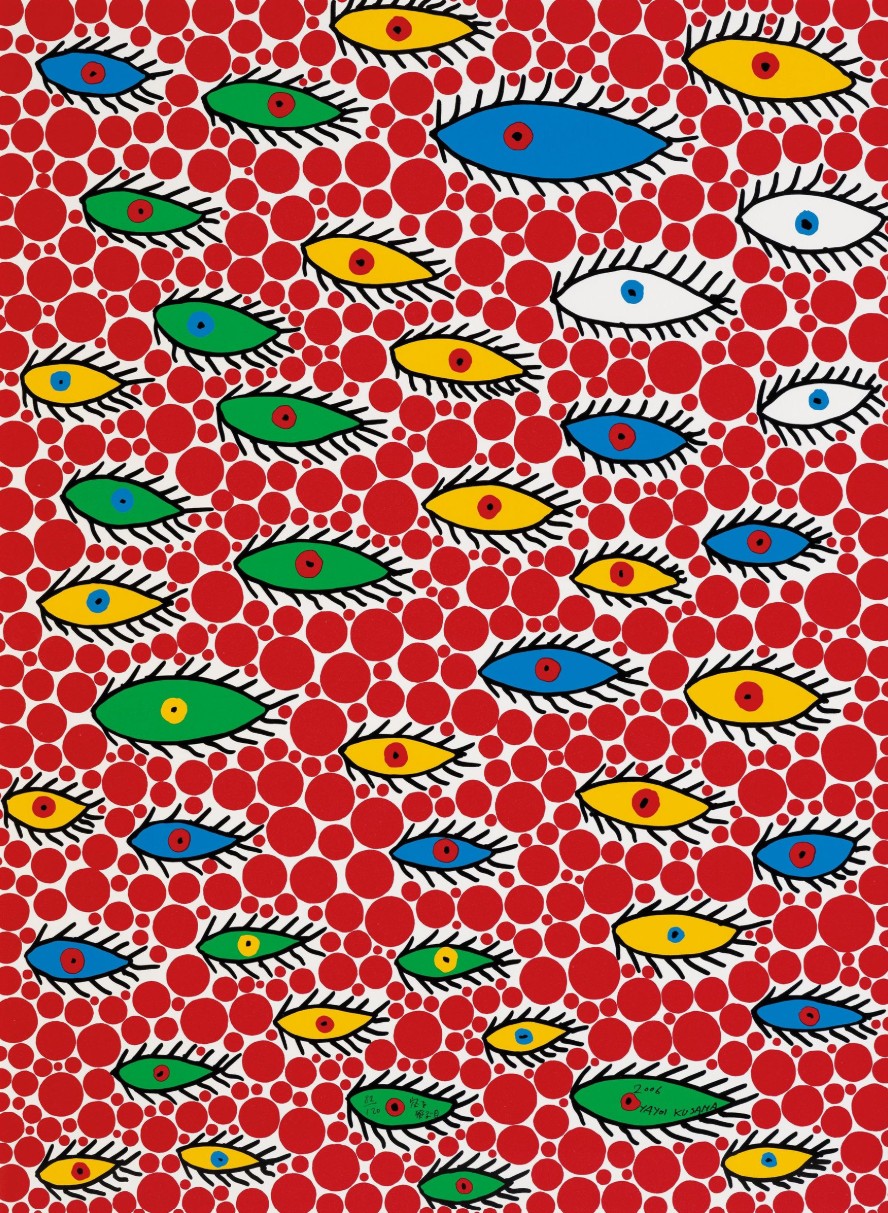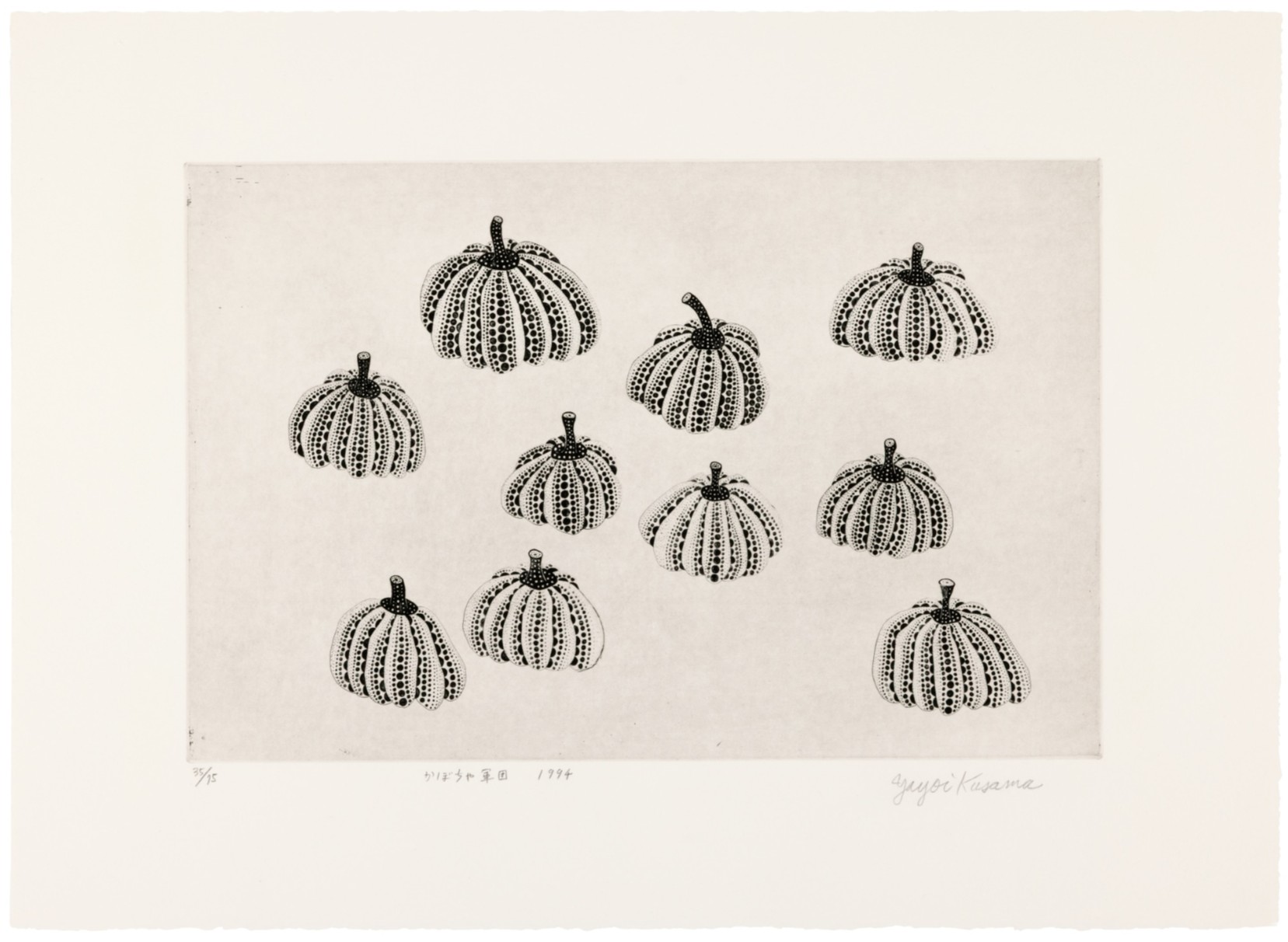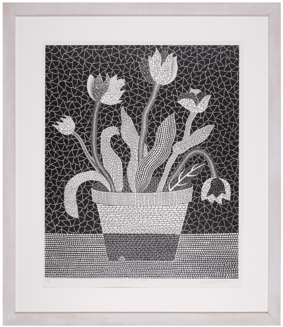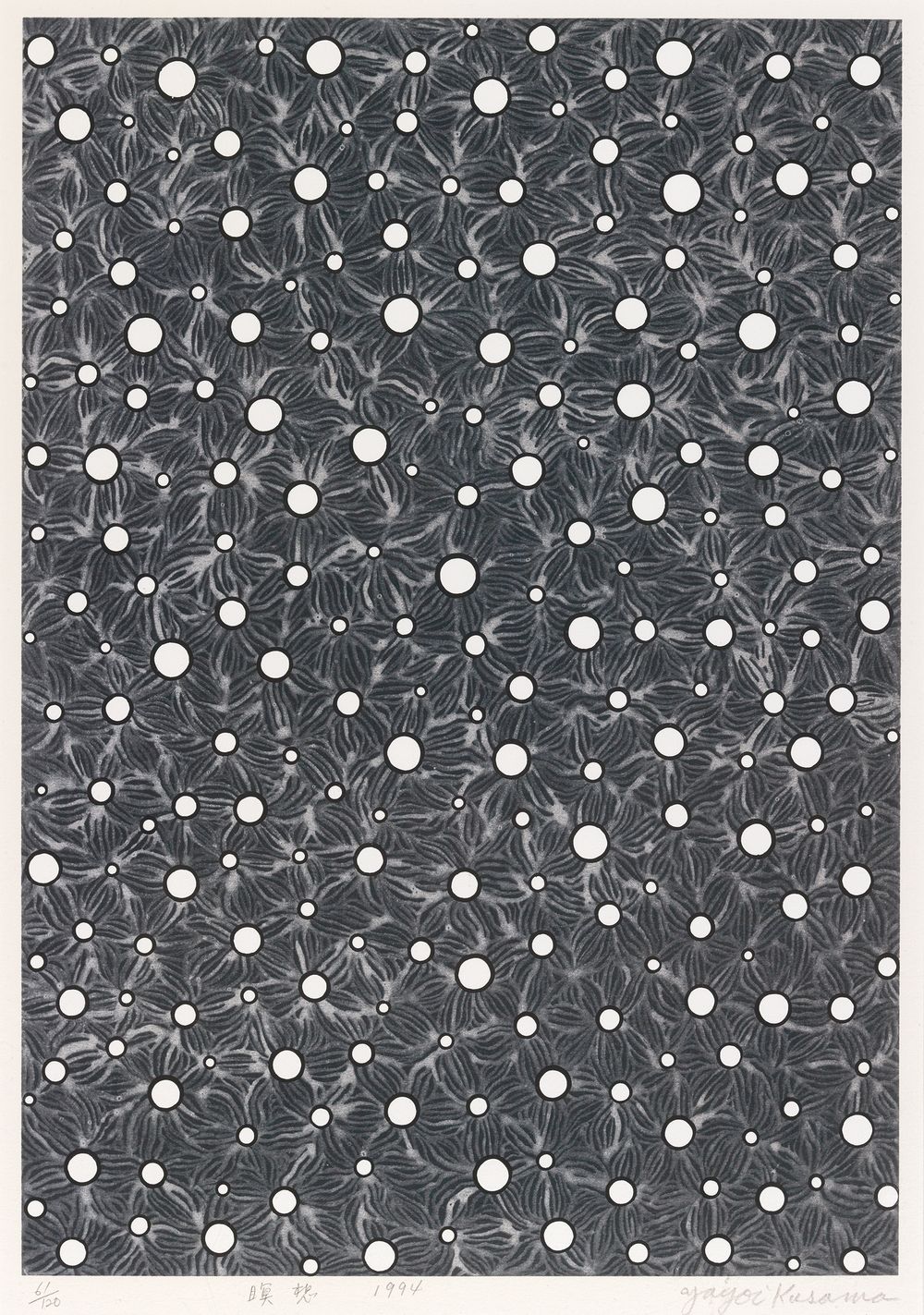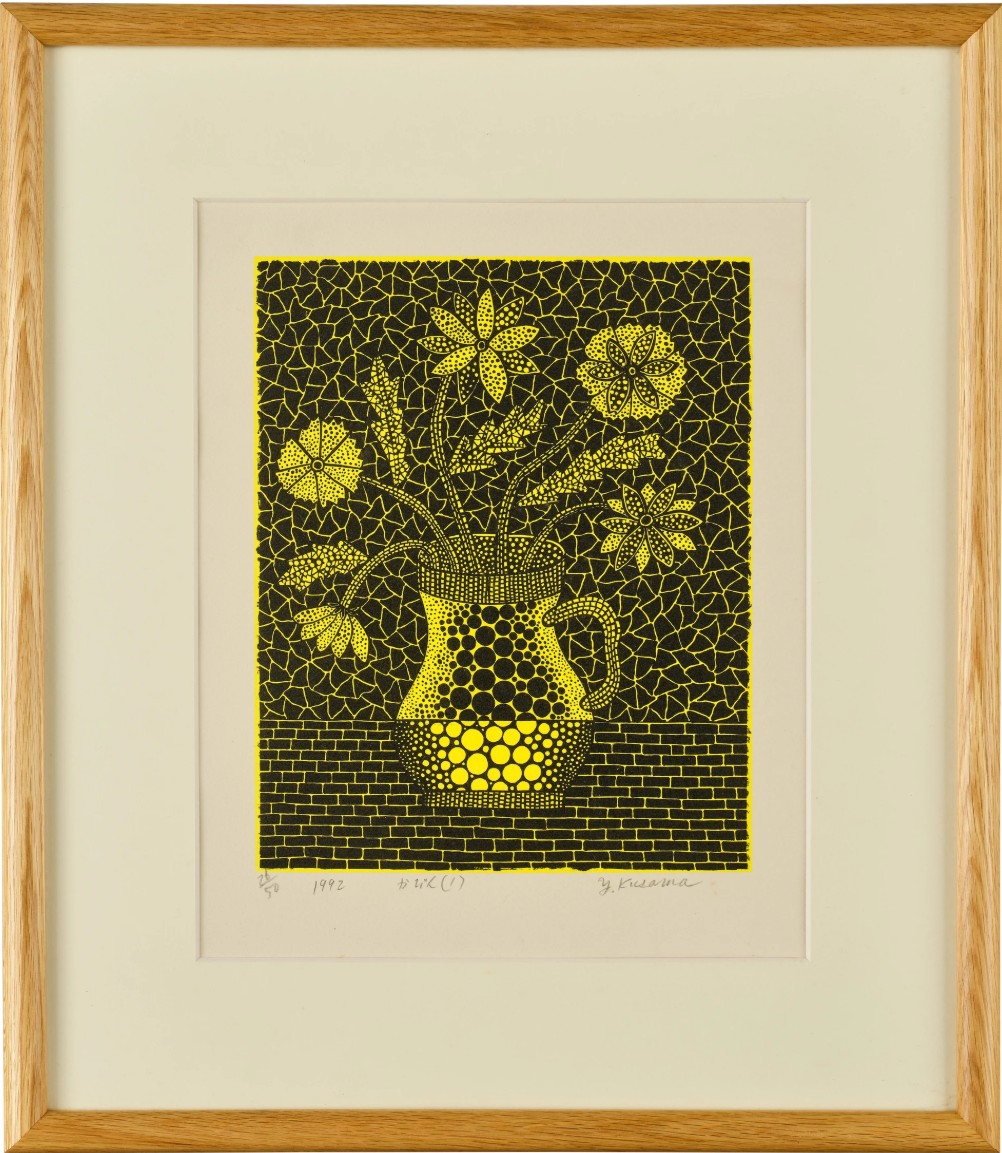 Signed, titled in Kanji, dated and numbered to lower edge ‘61/150 1992 Yayoi Kusama’