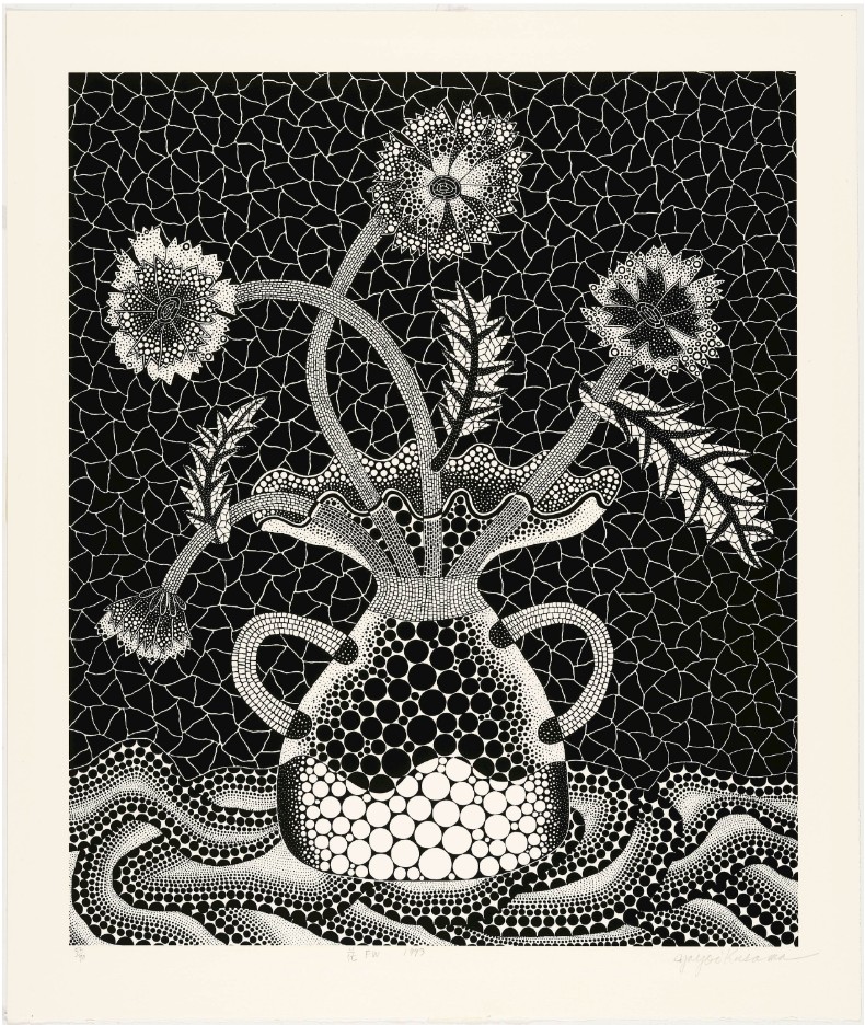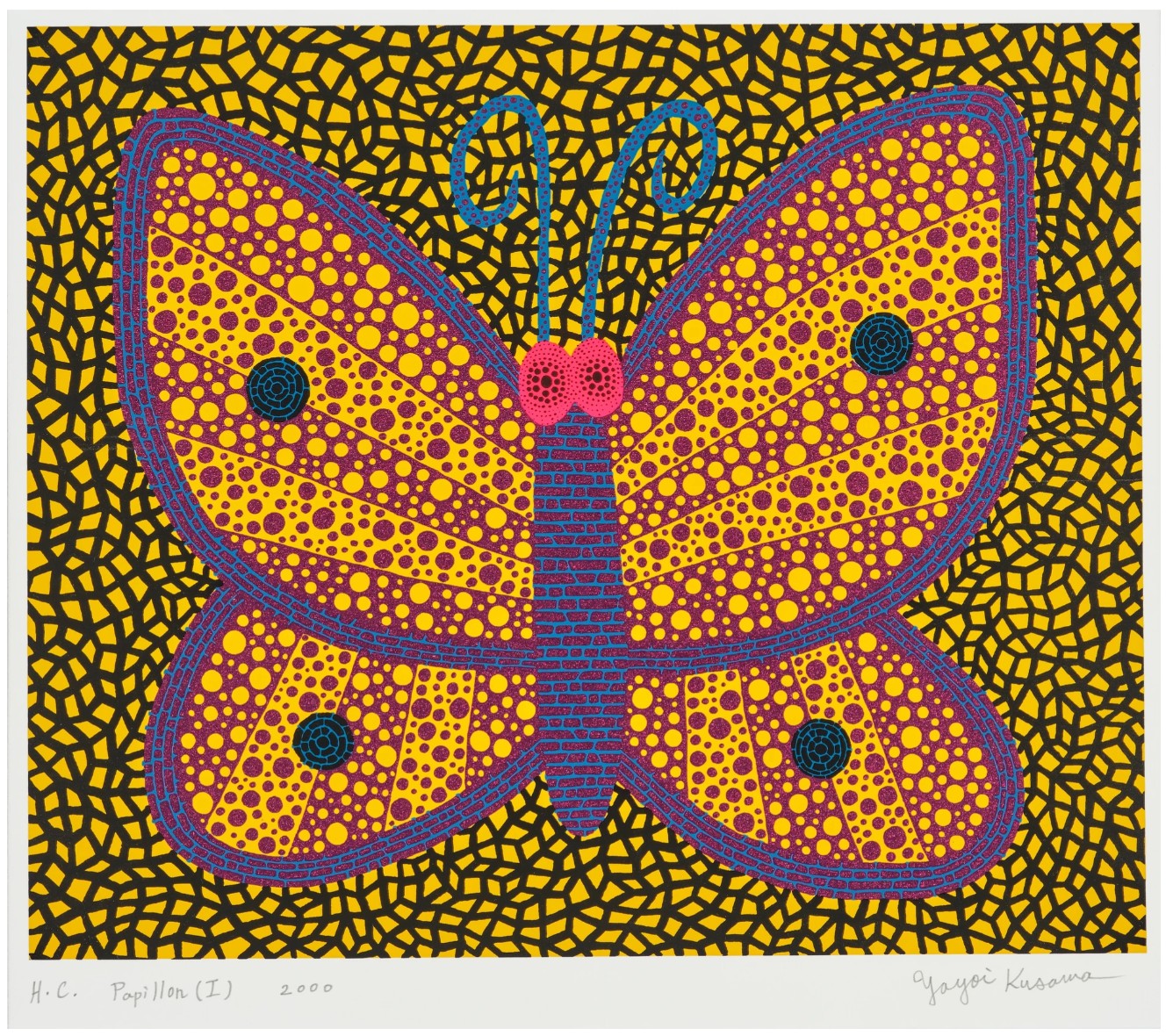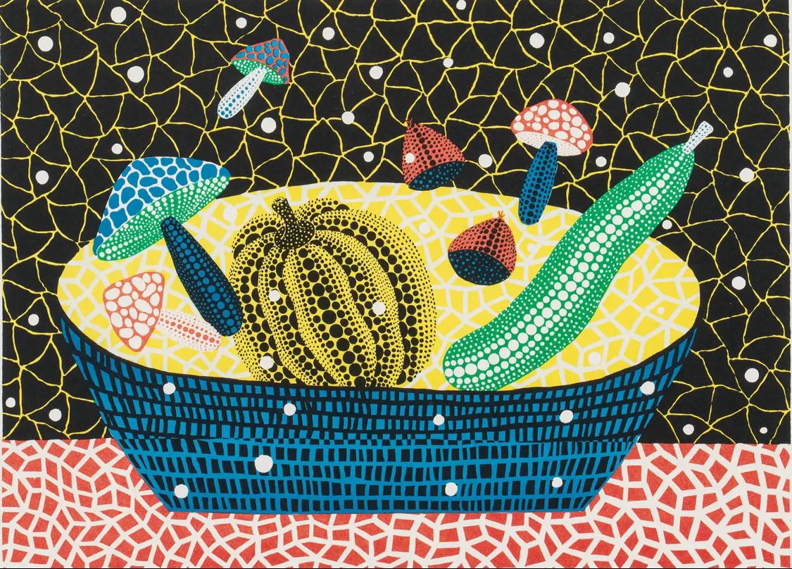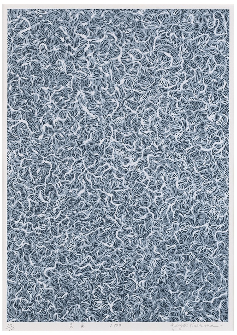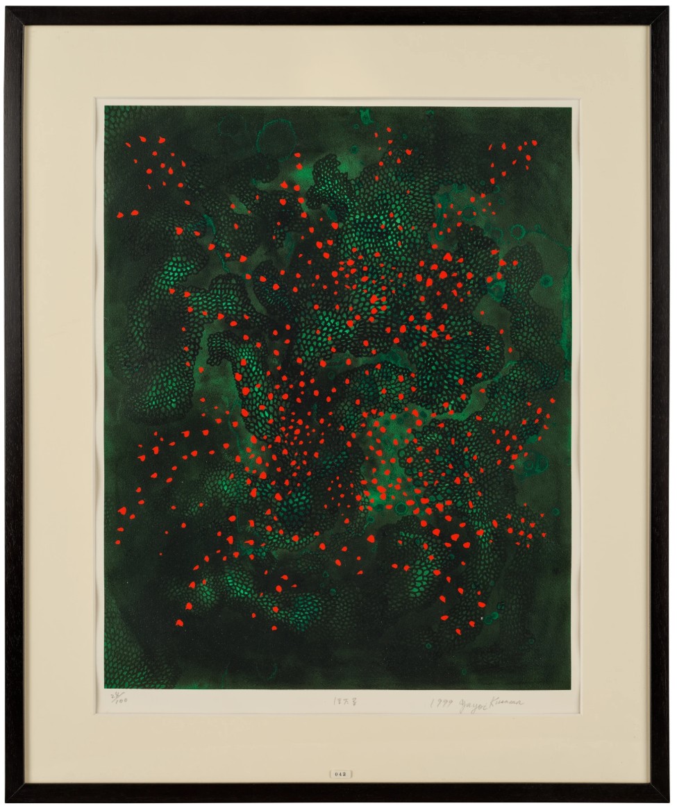 Signed, titled in Kanji, dated and numbered to lower edge ‘61/150 1992 Yayoi Kusama’